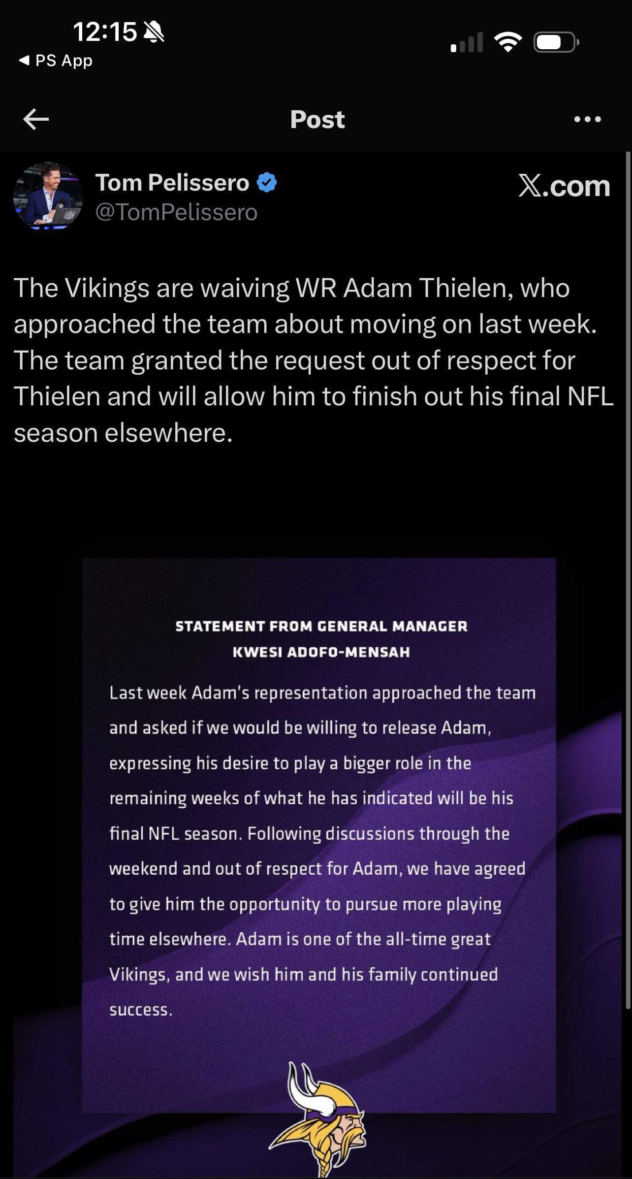 There were some Vikings fans being real dickheads about this trade so this amidst their implosion is hilarious. Don’t know if it’s the right move to bring him back with Coker finally getting some good looks but I also wouldn’t hate it and it would further add to the humiliation which is a plus for my petty ass