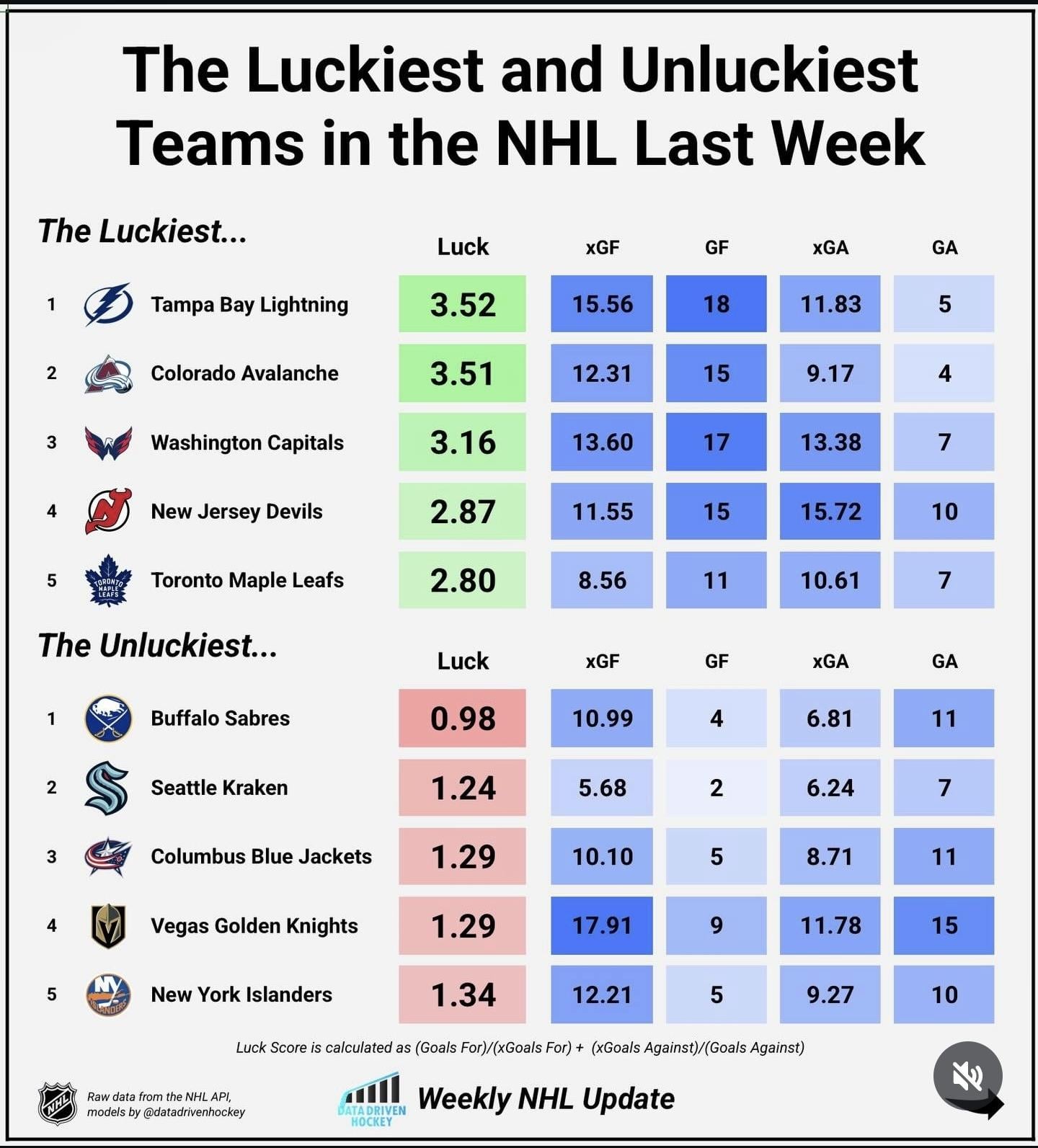 They’ve been really good and really unlucky. If they could just maintain a .900 save percentage they’d be the top team in the league outside of Colorado.