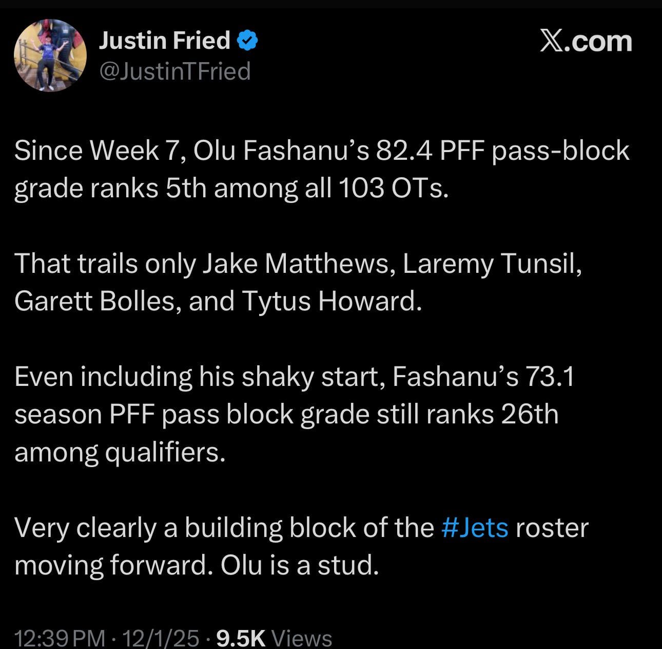 1. It took a decade, but the Jets built a wall. Tippmann, Olu, Membou look like long term anchors. Too bad about AVT. You just know he’s going to go somewhere, never get hurt for 10 years and be a multiple time all pro.