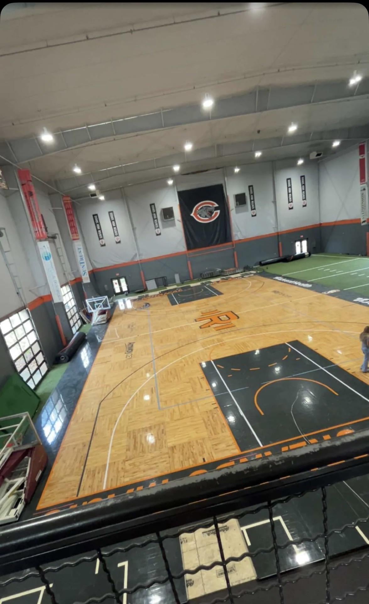 A local high school here in Tennessee got some new hardwood to practice on. Looks like a few pieces were replaced or missing, but mostly looks original.