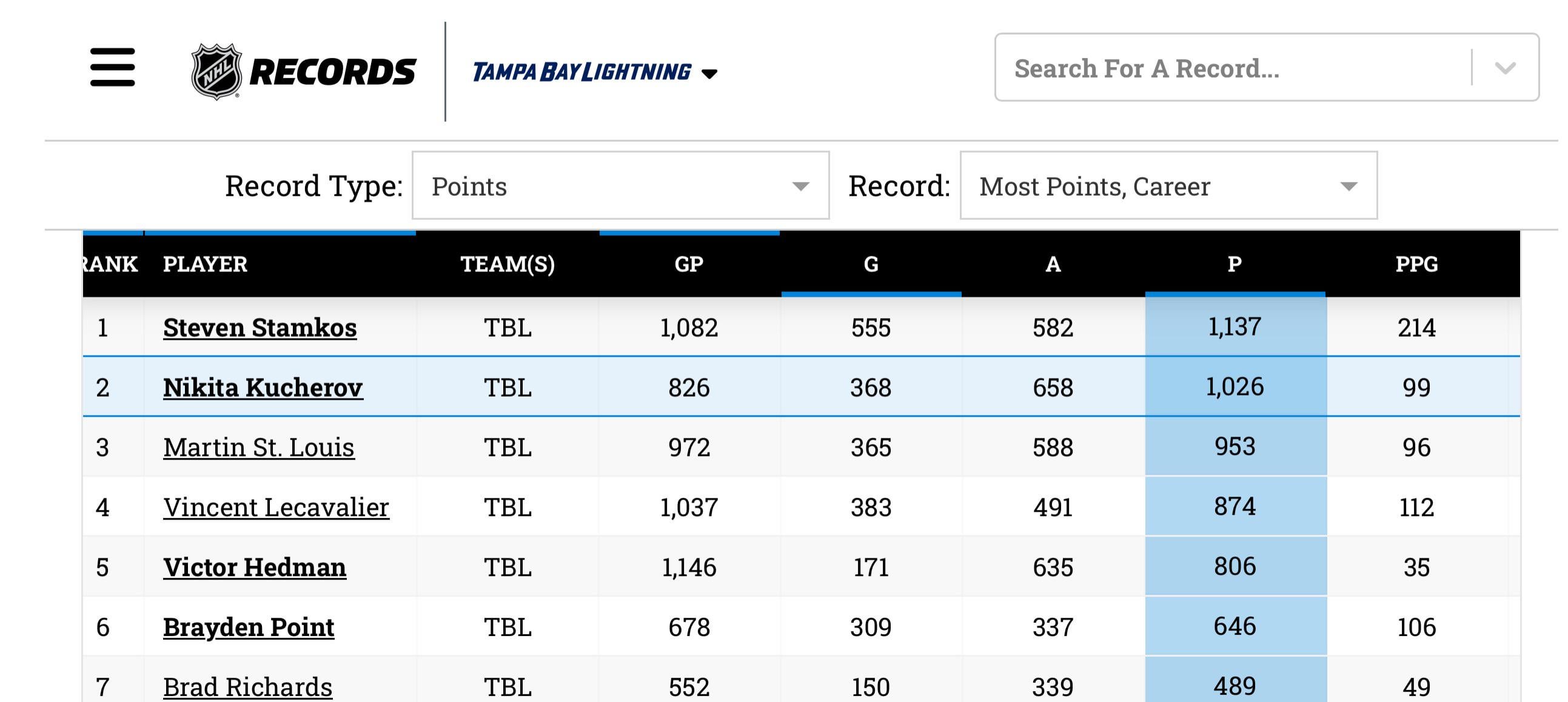 A month ago I made a post asking if anyone thought Kuch could become the franchise points leader this season https://www.reddit.com/r/TampaBayLightning/s/fTxGywF0uQ