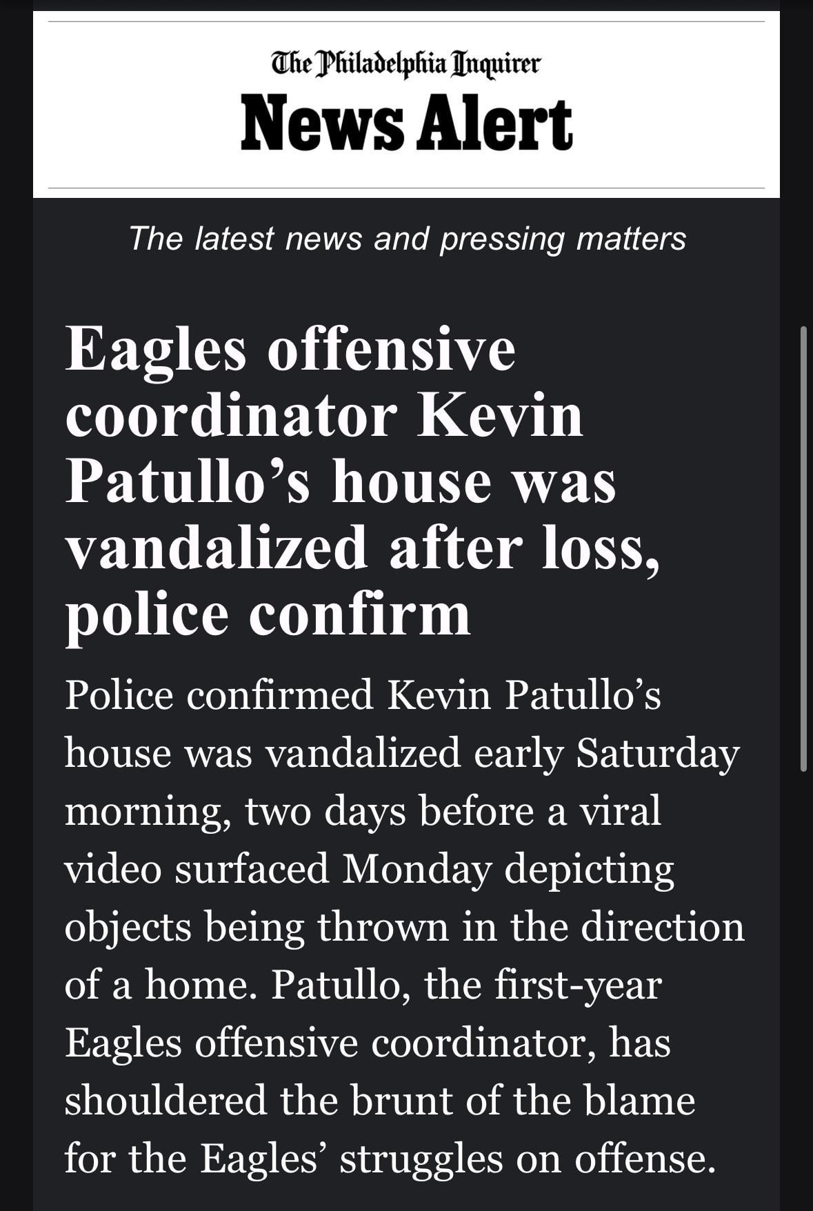 5. Trash people. I hate Kevin Patullo as a coach but it does not mean throw rocks at his house and harass them. I want those people banned for life from the Linc