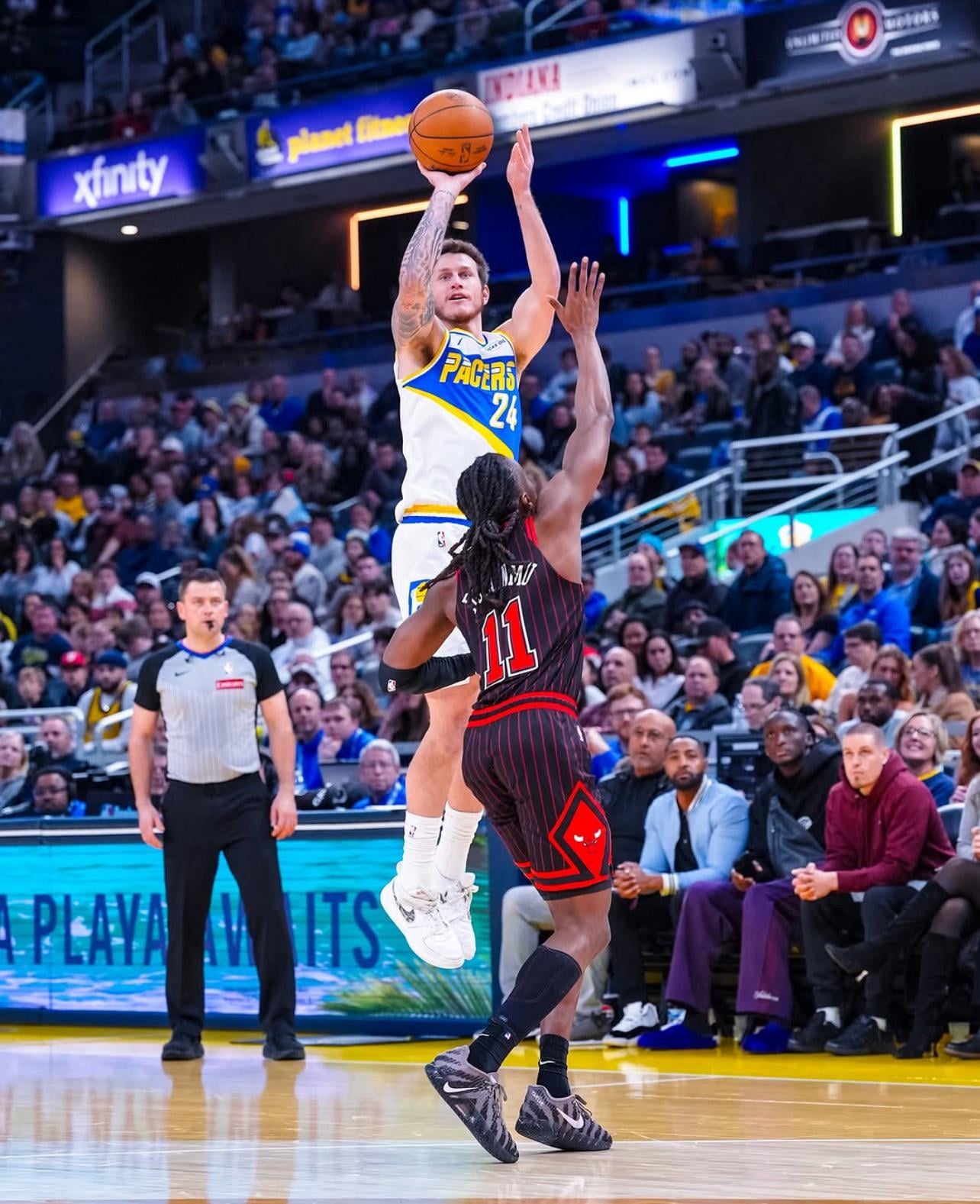 He’s clearly a far better shooter than we’ve seen, but all we’ve seen him do so far is miss 3 point attempts. 2/13 so far as a Pacer