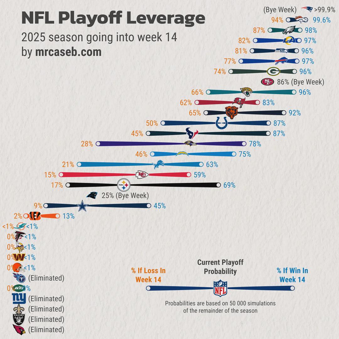 Pretty crazy how if we win and the Bears lose, we’d have essentially the same odds to make the playoffs. We’re currently on the outside and they’re the 1 seed