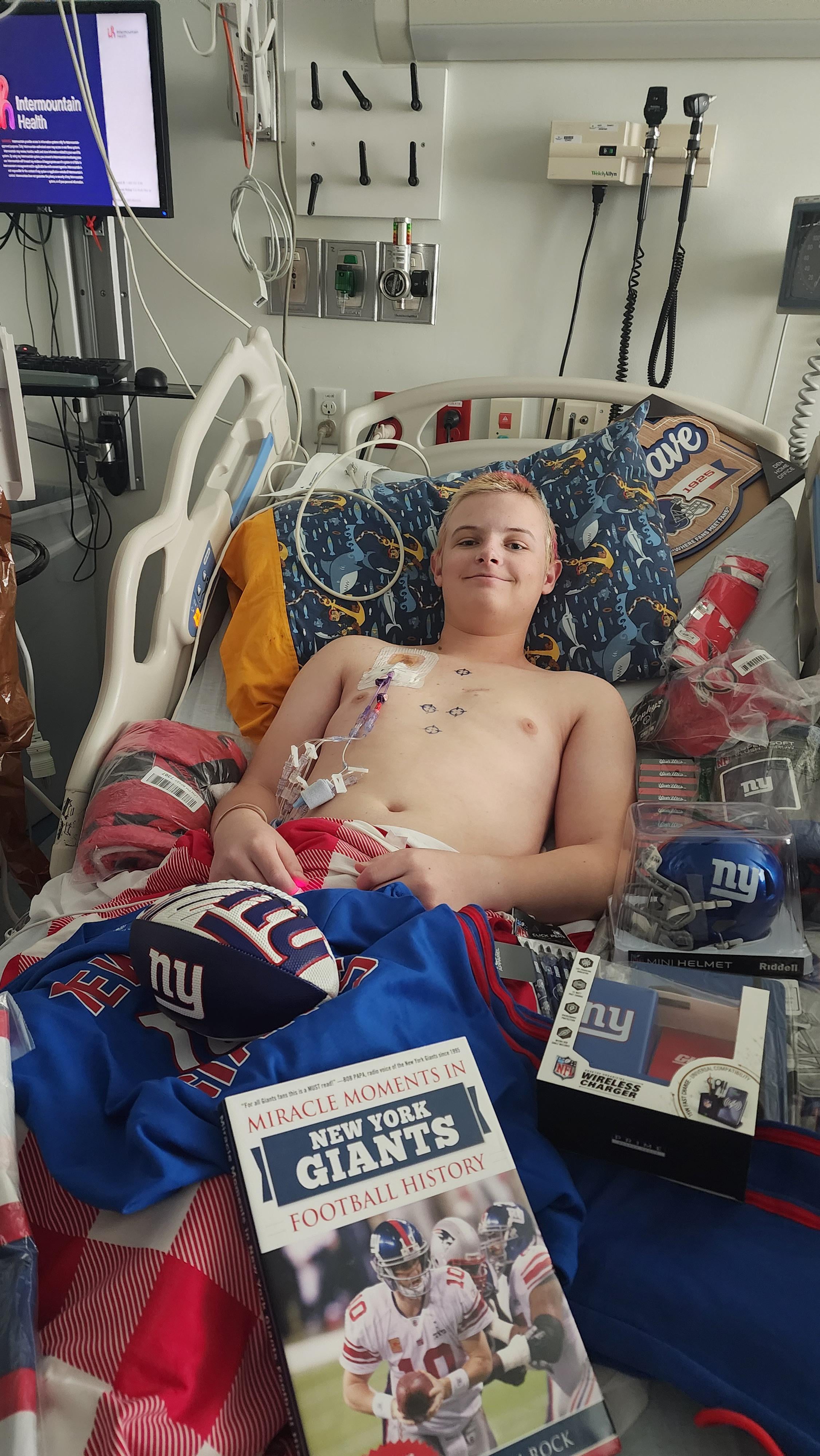 My son JP is 16 and is currently battling cancer for the 3rd time (aged 2, 7 and 14). We live in Utah and are huge Giants fans (my dad is from NY and raised me right). JP has never been to an NFL game but we are planning on surprising him by taking him to Las Vegas later this month to see the Giants. I would love to take him to NY but driving to Vegas is much easier considering our current situation. We did his Make A Wish trip when he was three and he debated between Disney World and meeting the Giants but that darn mouse won. JP’s journey has been anything but easy but we are still trying to live life to the fullest.