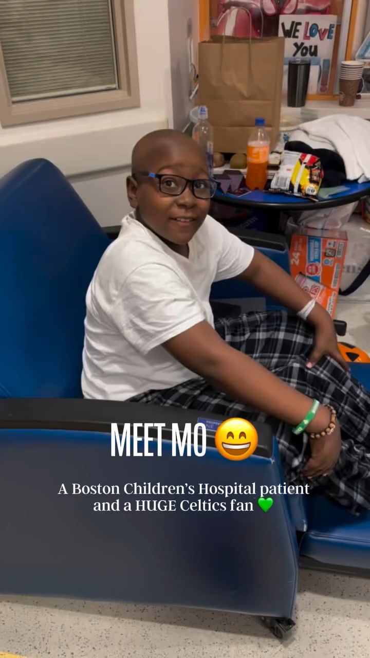 [Celtics] Mo aka Mayor Mo at Boston Children's got a special surprise today when his doctors cleared him to leave the hospital and attend the game tonight 💚