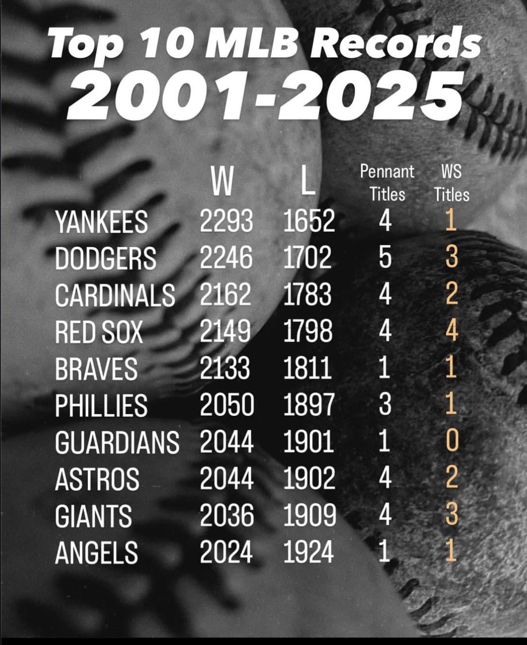 I knew we had one of the better records in baseball over a recent span. The category that pains me to see is the World Series titles. I cannot believe we stand completely alone. You’d think we’d at least have a little company, maybe a team or two.