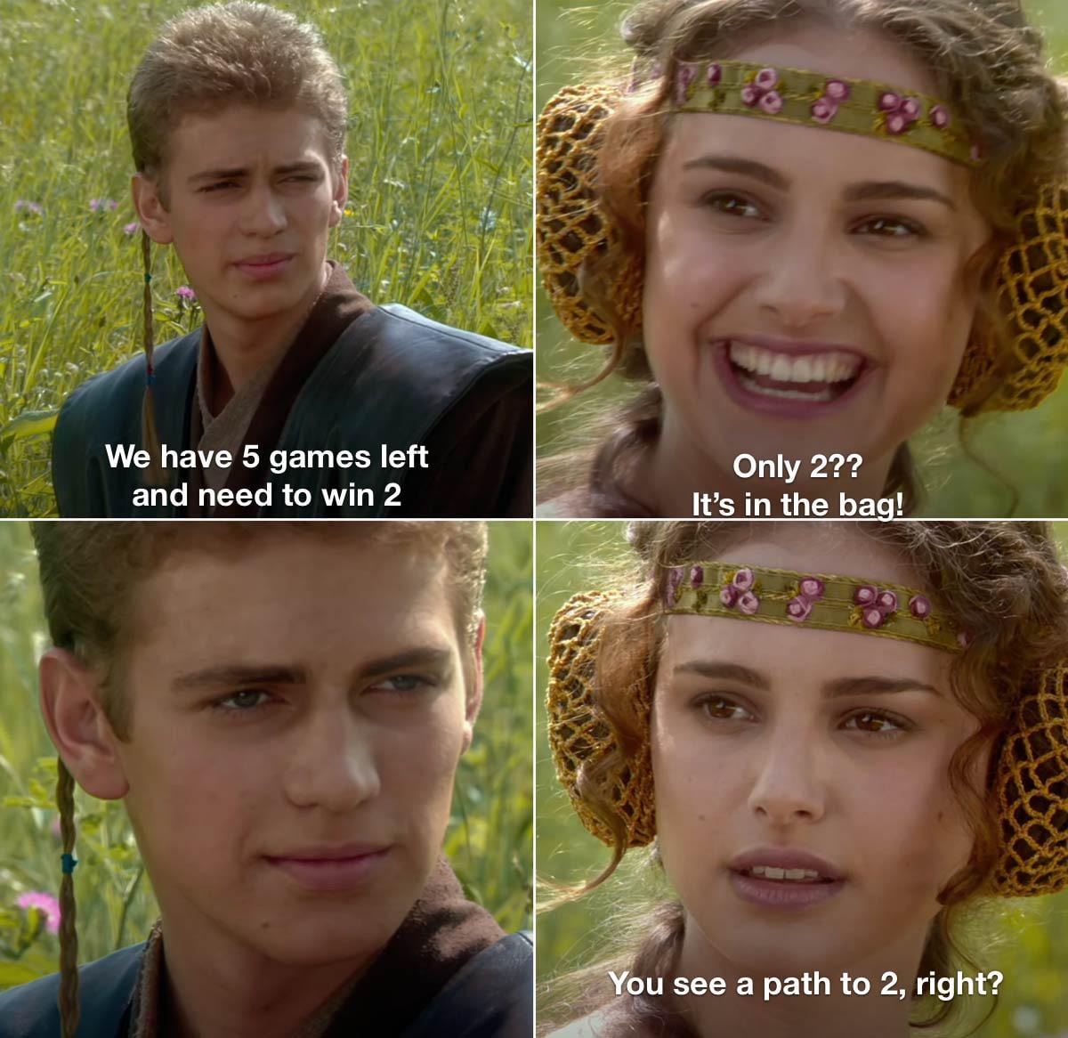 No one is saying that we only need to win 2 of the next 5 games. Delete this immediately.