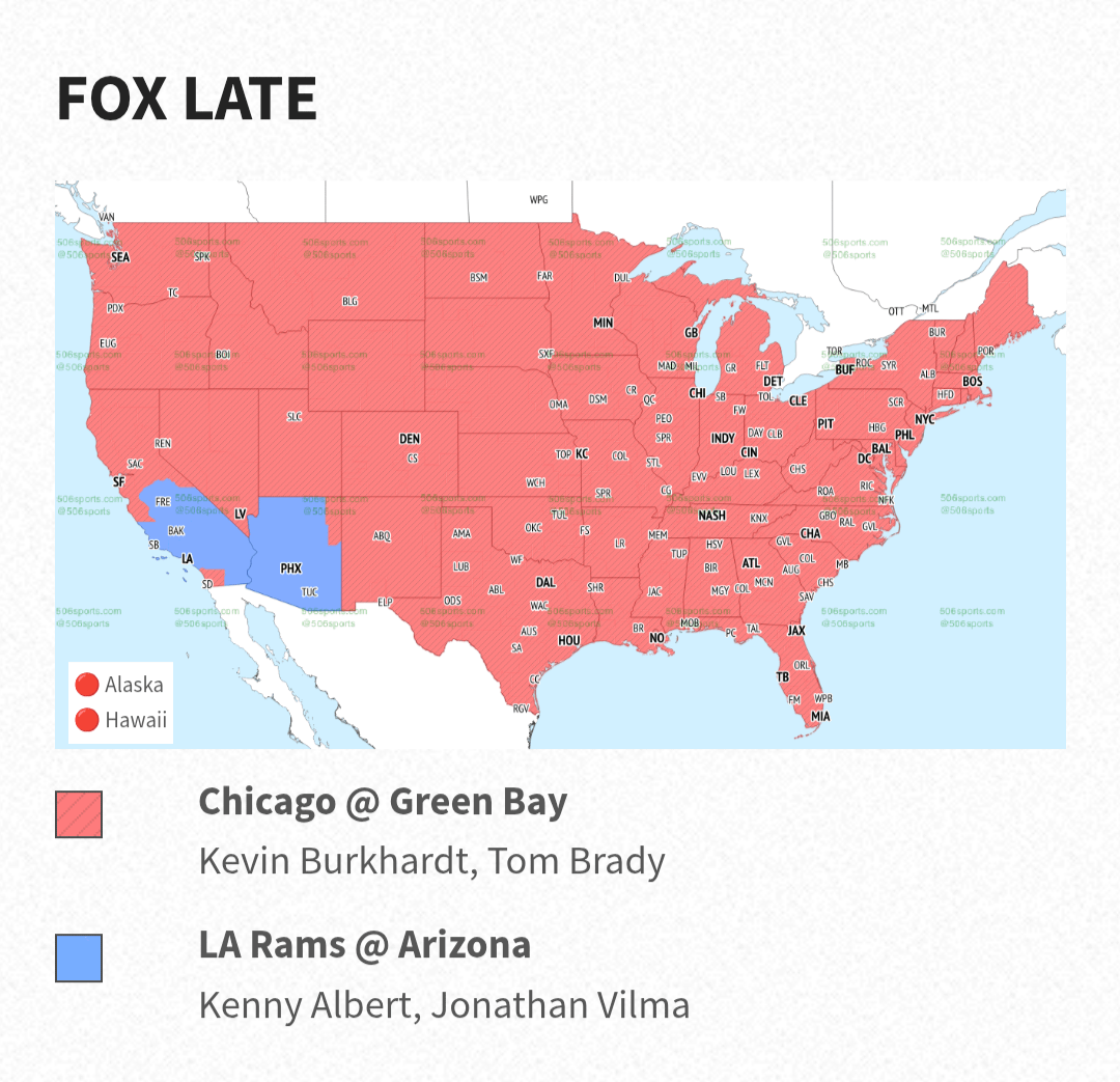 Suprised Arizona isn’t showing the Bears – Packers since it’s Chicago South. Also, the fact that there is a sliver of AZ still showing the Bears game is great.