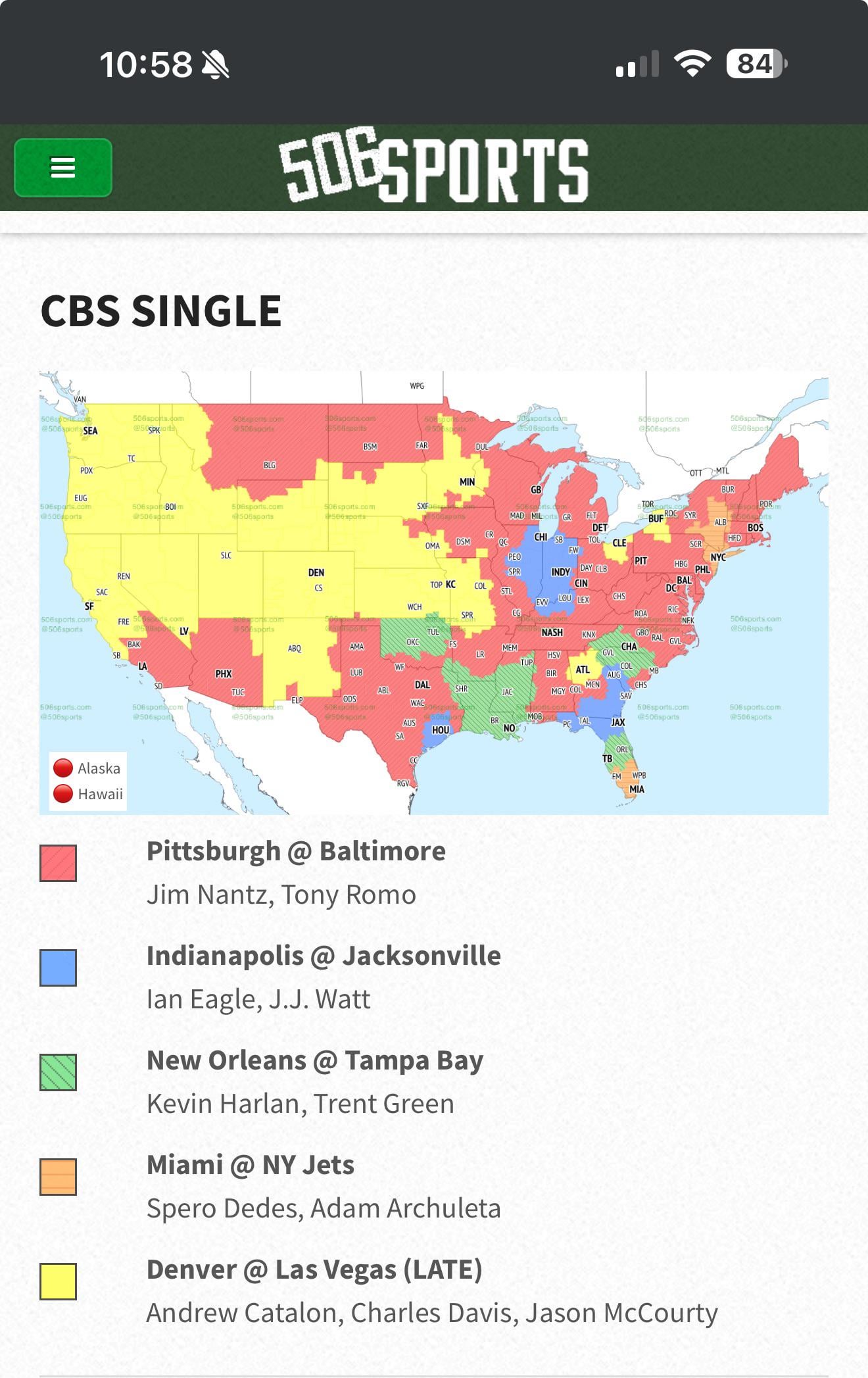 Funny, Orlando’s been getting Jags games for weeks and Indy finally plays them… but the Bucs are on CBS this week, so Orlando gets the Bucs instead.