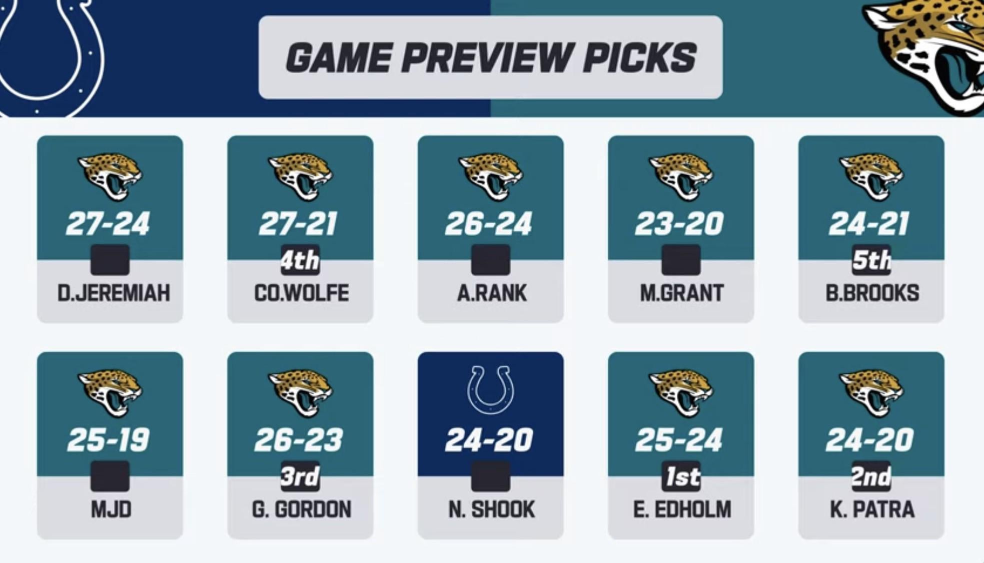1. What’s got them skewed so heavy toward the jags? I thought the line at Colts -1.5 is fair.