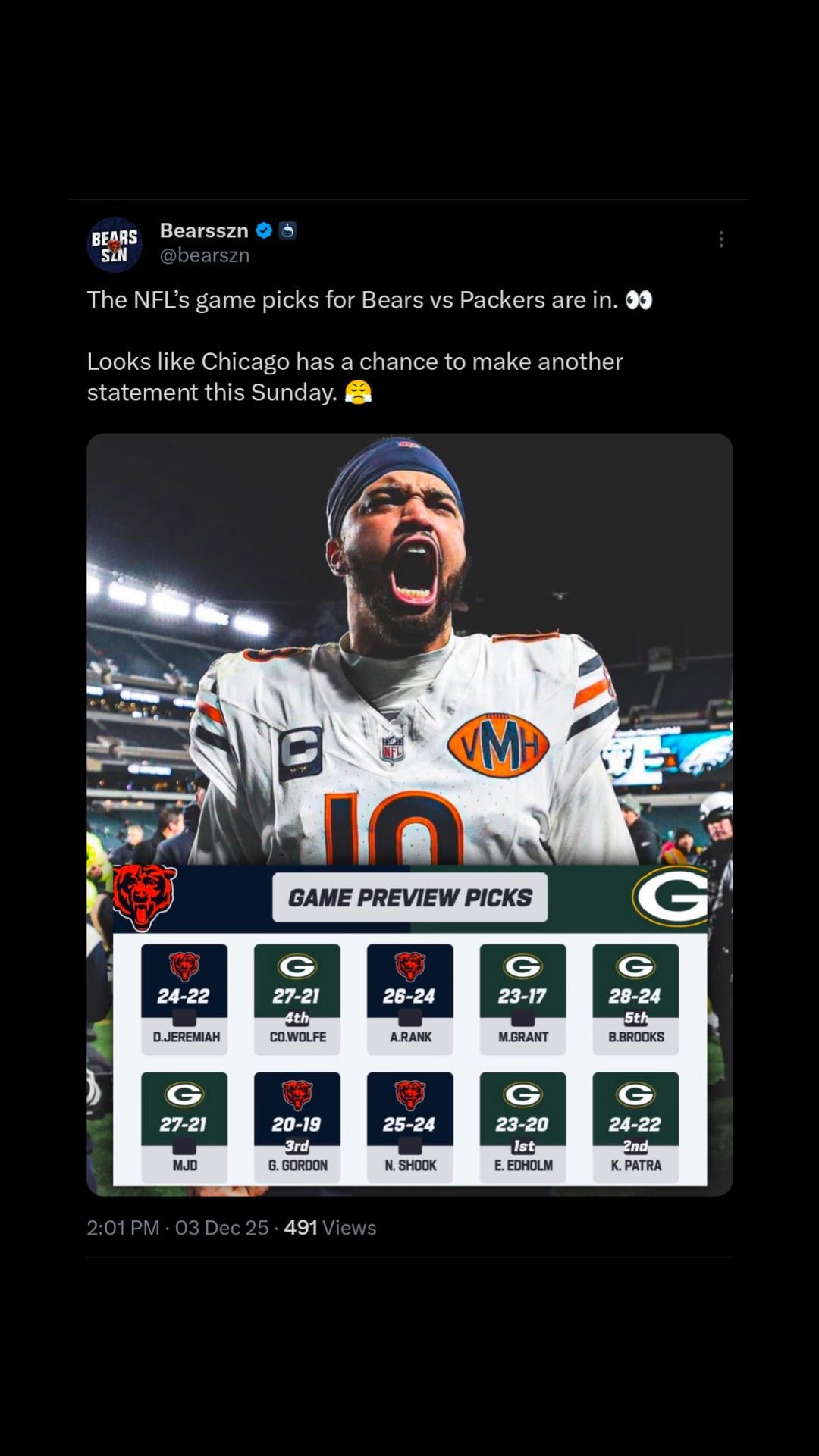 Shout out [Bearsszn](https://x.com/bearszn?t=K6L4Qh5RdCdxKbIq2MM0Dw&s=09), one of the best Bears follow on Twitter if you’re there.