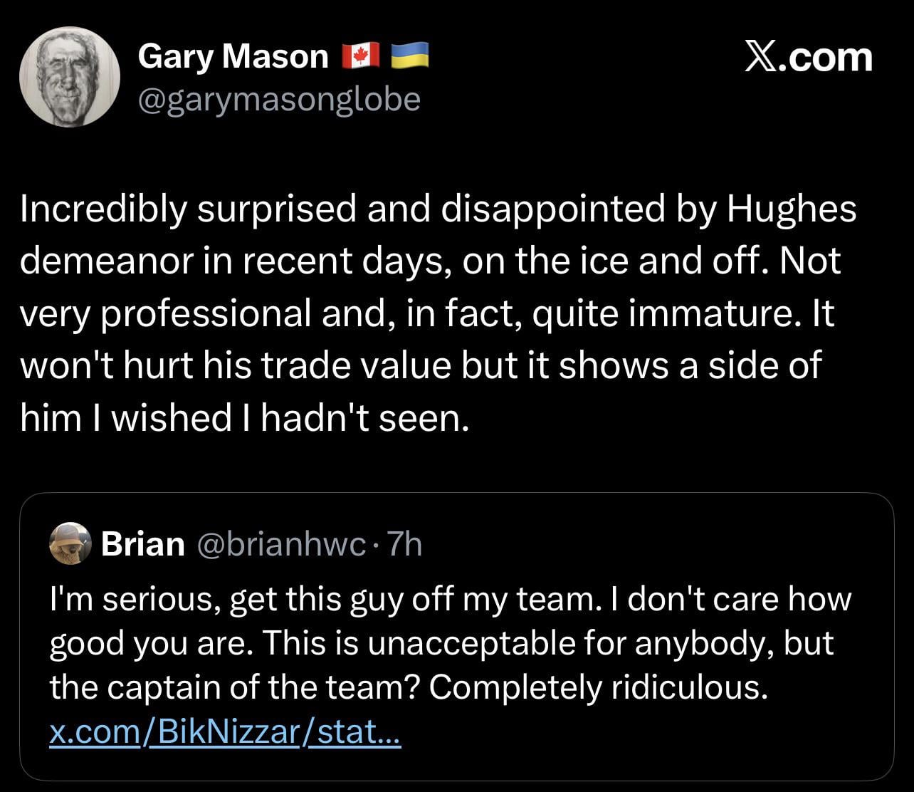The team drove away Miller and Tocchet and it’s pretty clear Foote is in way over his head. I just cannot blame Hughes for being sick of Aquilini’s mess of a team.