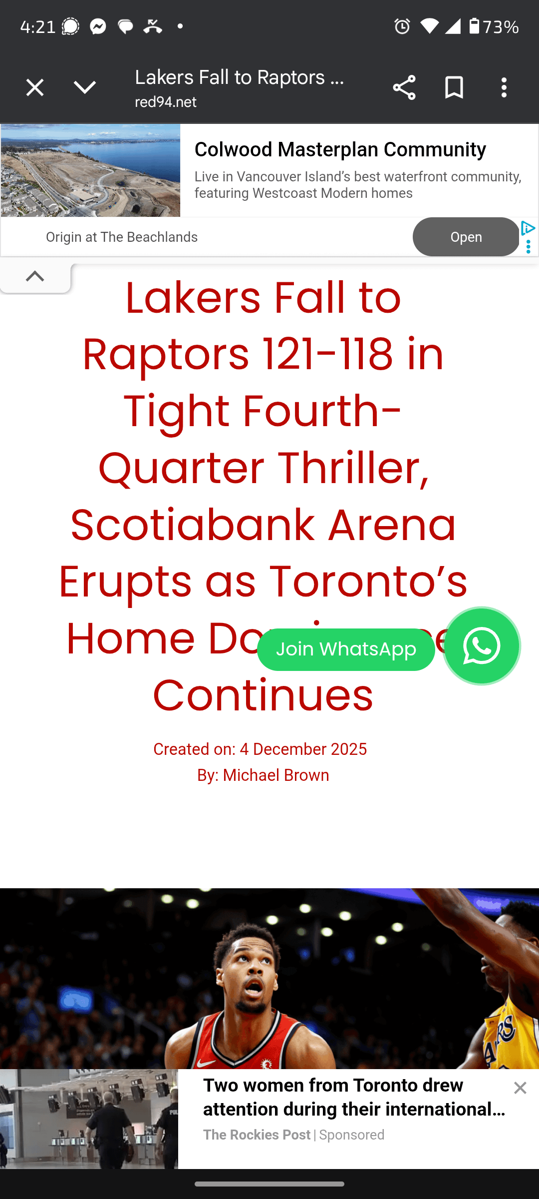 _“Daily Discussion: Dec 3rd – Post Game Edition – **Your Toronto Raptors (15 – 7) defeat the Portland Trail Blazers (8 – 13), 121 – 118.”**_