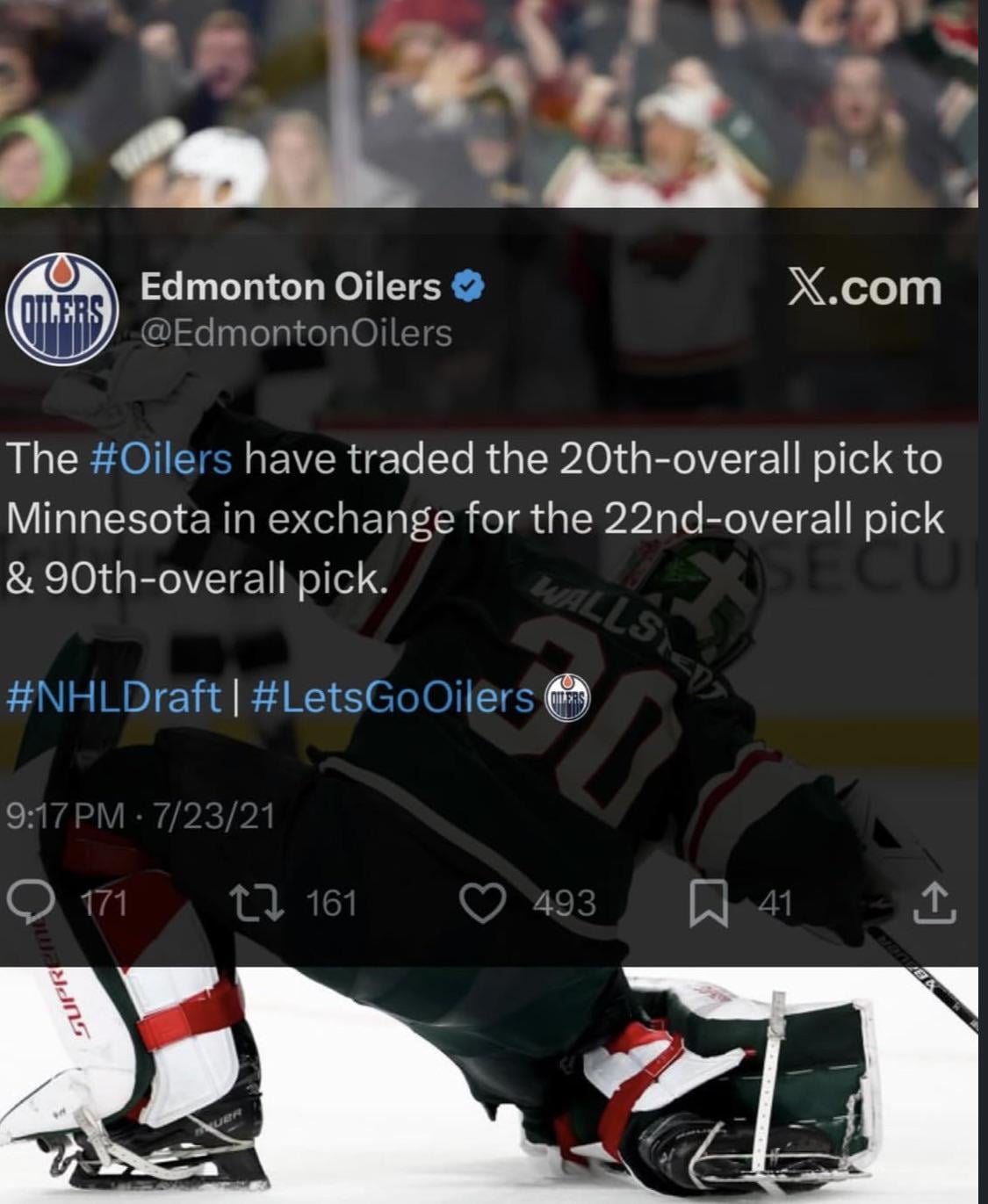 Oh trust me oilers fans have not forgotten that their GM not only didnβt pick Wallstedt but that even after they traded down they didnβt pick Wyatt Johnston either.