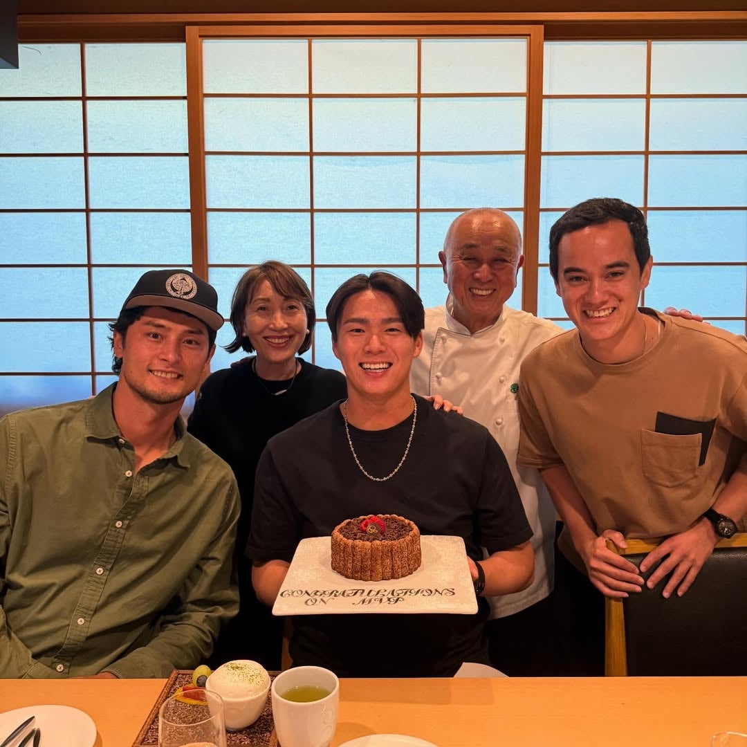 Looks like 3 college-aged buddies celebrating graduation. Yu is 39 years old.