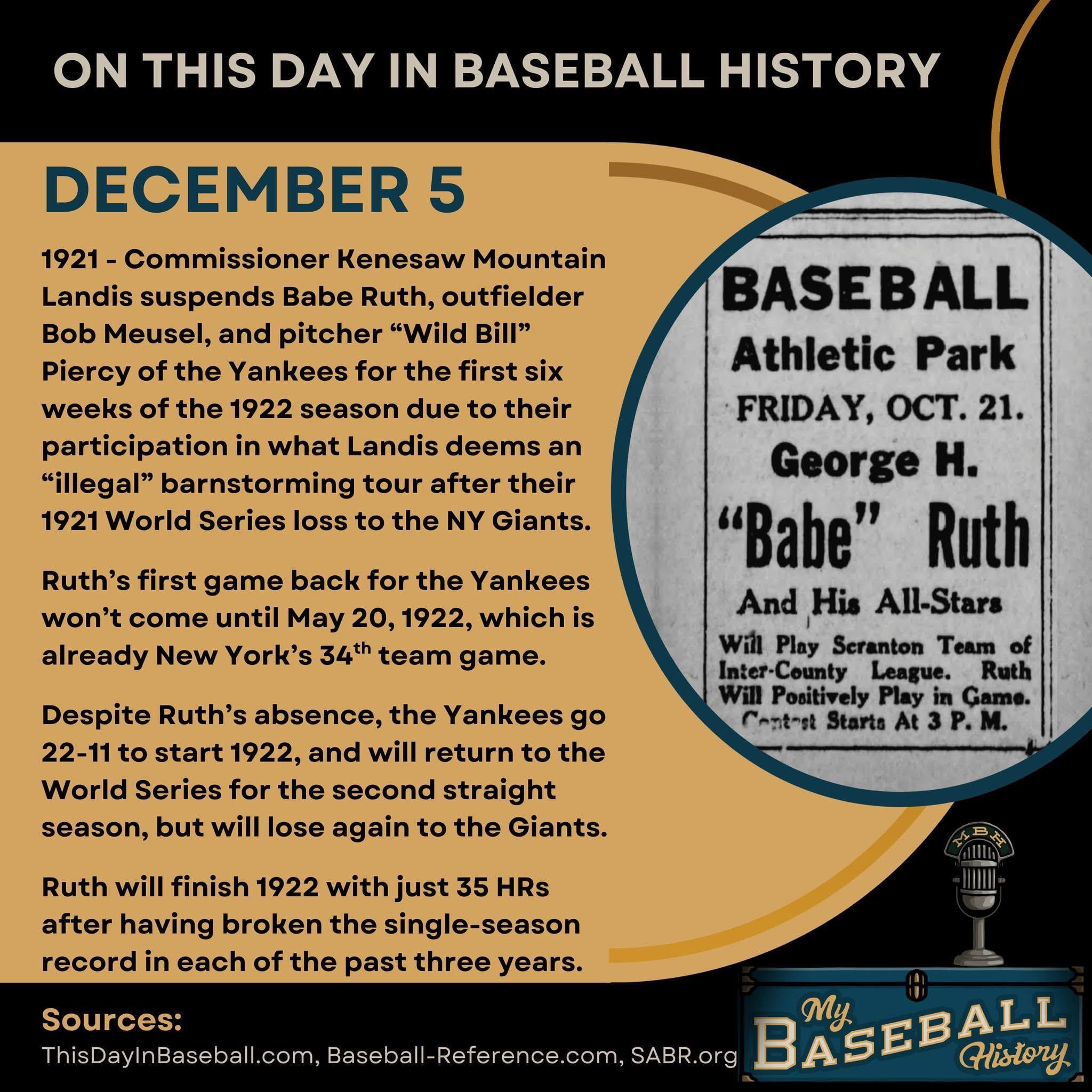 On This Day in Baseball History – December 5 2 comments These are the coolest! I want this calendar [Kenesaw Mountain Landis was a bad motherfucker. He was 17 feet tall and had 150 wives.](https://www.youtube.com/watch?v=JIdH4n5SYPg&list=RDJIdH4n5SYPg&start_radio=1) Leave a ReplyYou must be logged in to post a comment.