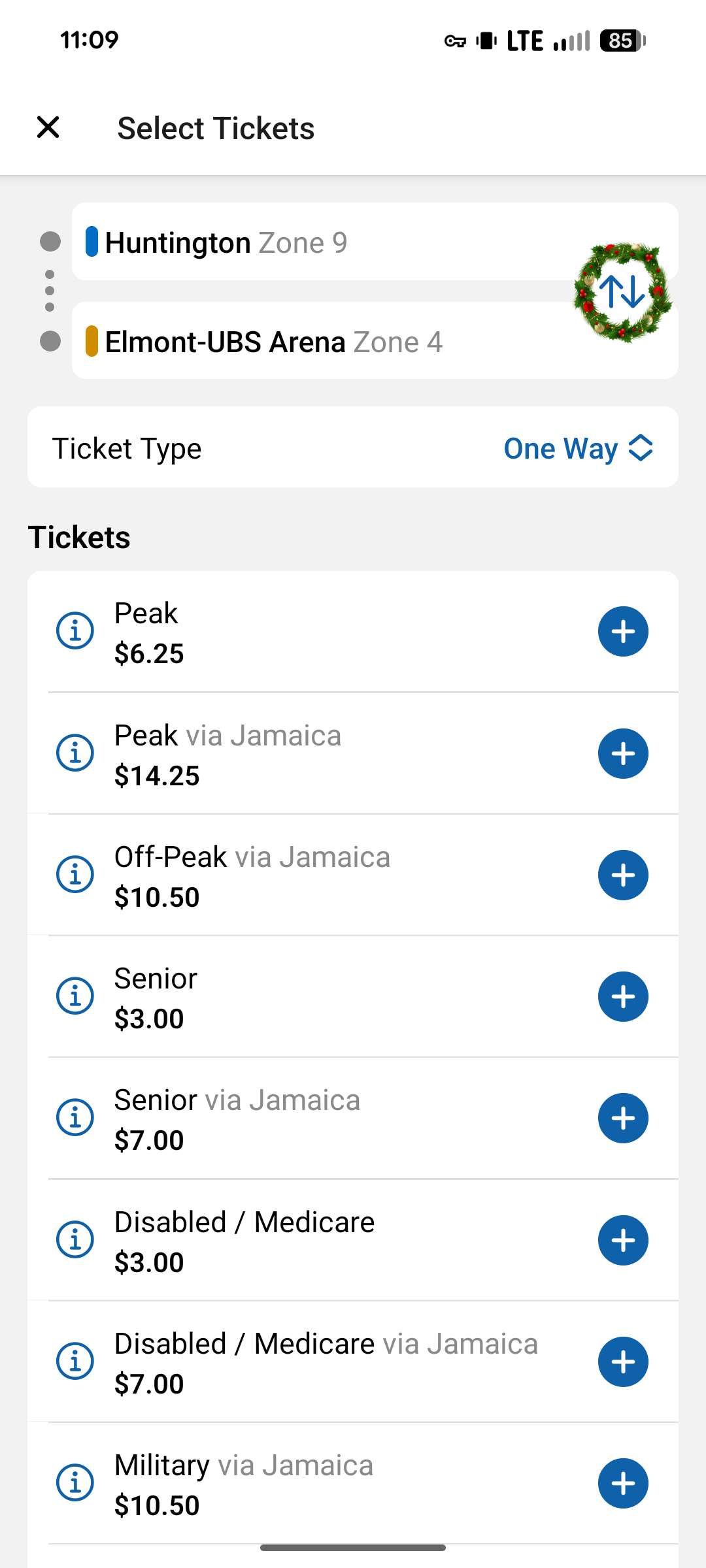 The off peak has you taking the train to Jamaica, and then from Jamaica to UBS. The $6.25 peak is Huntington straight to UBS. It’s more money because it’s more stops