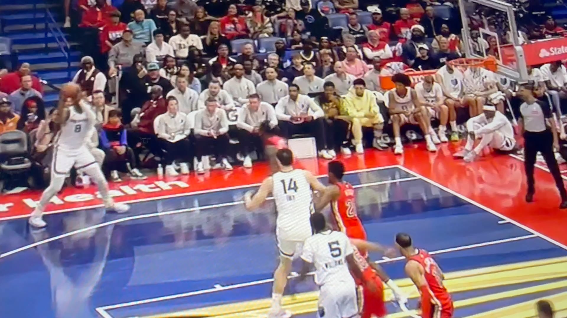 1) Gets stuffed at the rim, fine, whatever. He then completely loses track of Missi who then yams it on the other end