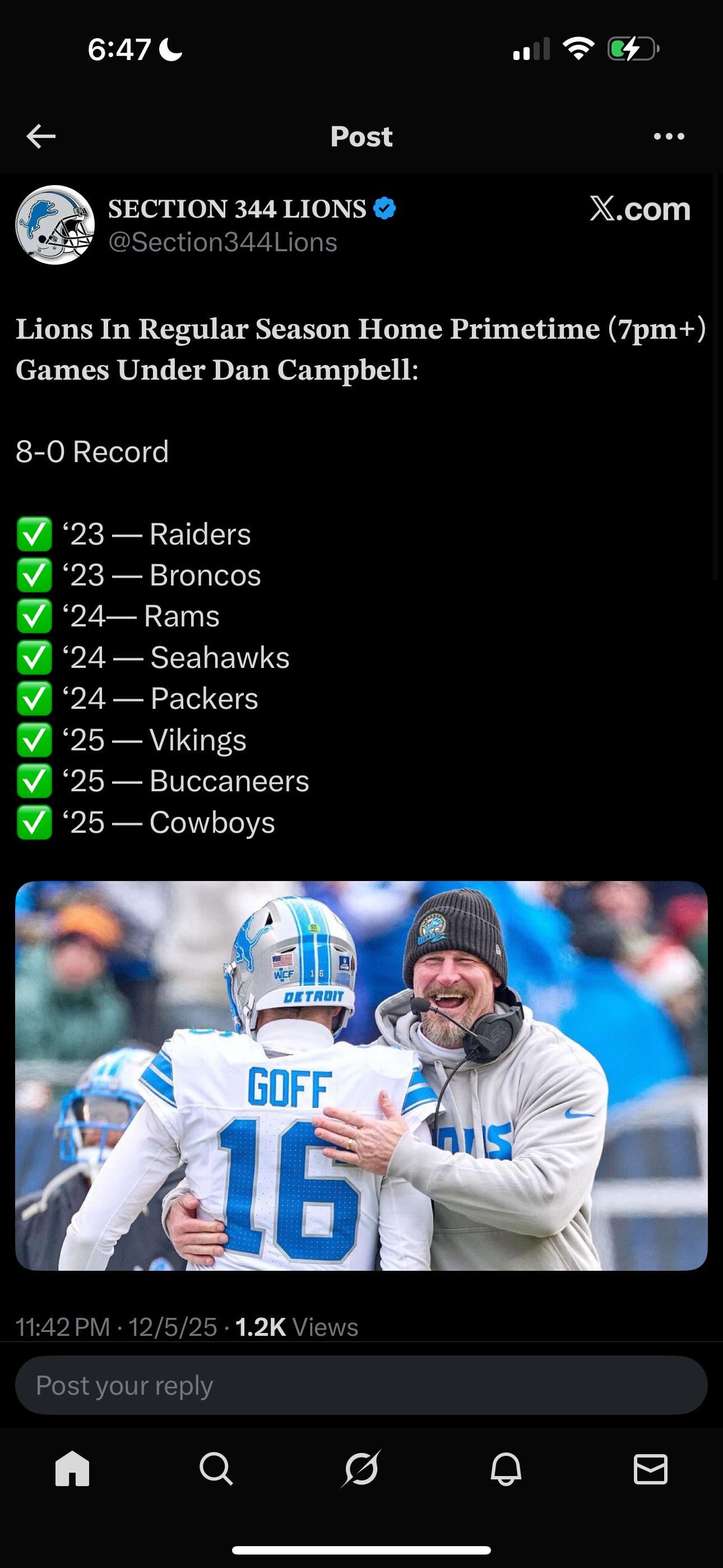 We used to call them the prime time “fat cats” because they would be lousy all year then look unstoppable Monday ( Silverdome days before Sunday and Thursday night games)