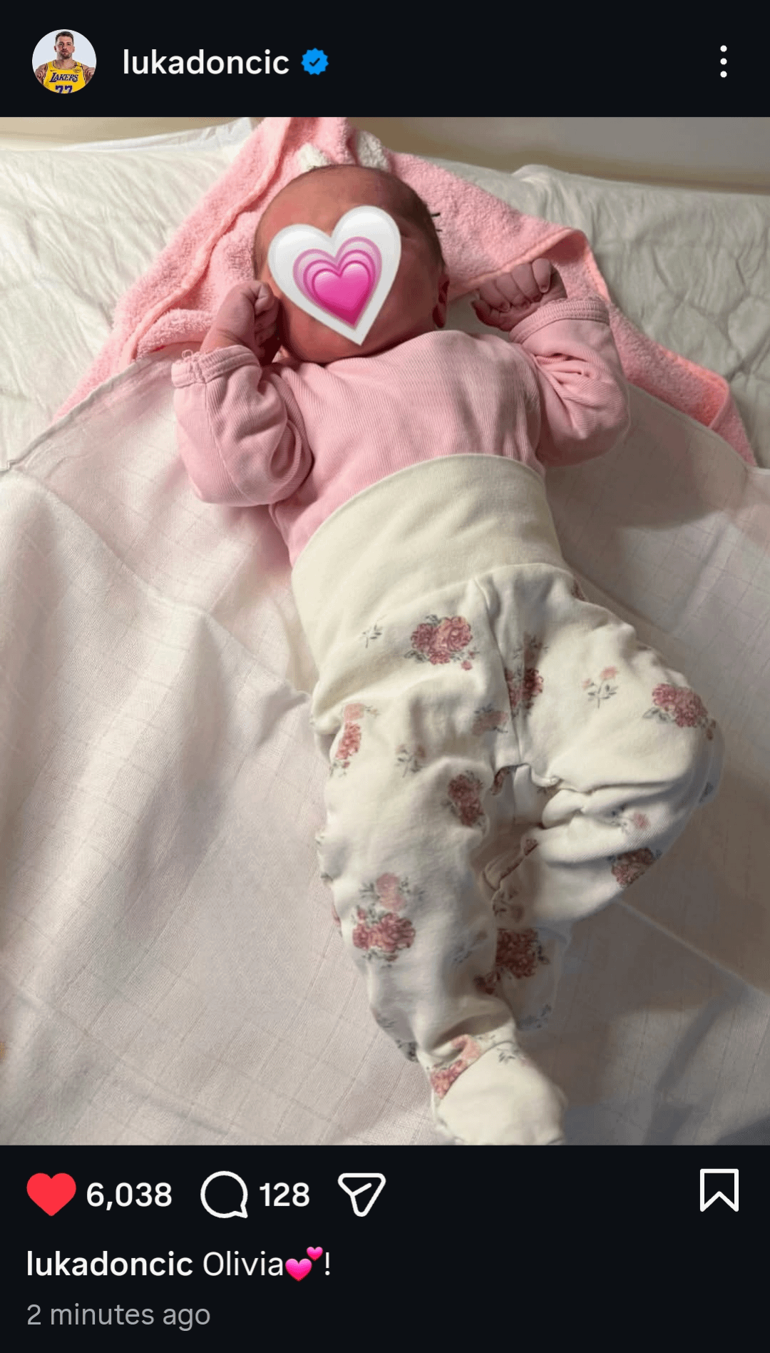 Luka Doncic got a new daughter, Olivia! 4 comments A princess of Dal-… oh right nvm. We need an heir!!! Congrats to Luka. I’m also a girl dad and my second born is also named Olivia. Come back, Luka. Our schools are better than LA’s and she will be taught the Cotton Eye Joe. Leave a ReplyYou must be logged in to post a comment.