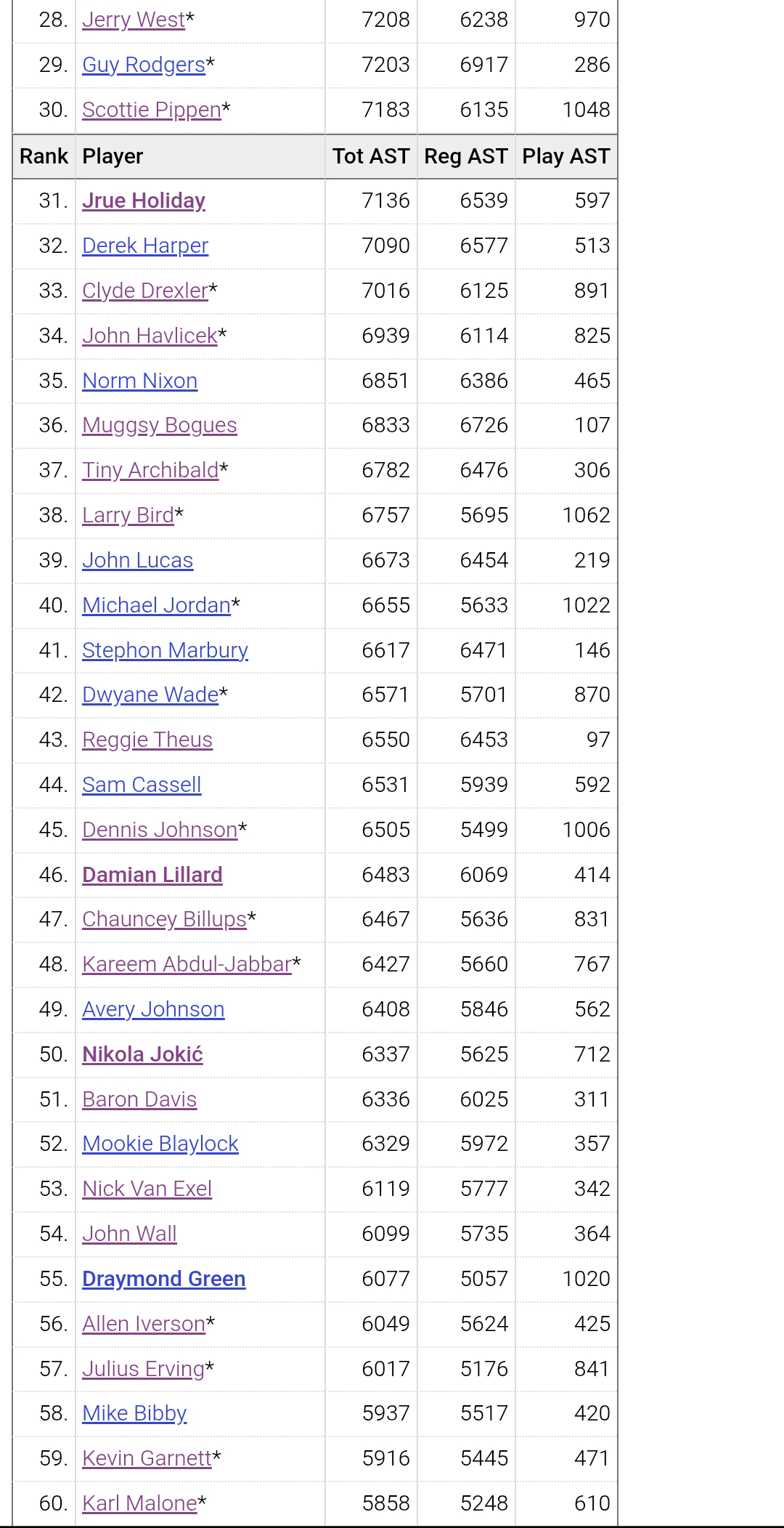 Nikola Jokic is currently top 50 in the all time ranking of Assists