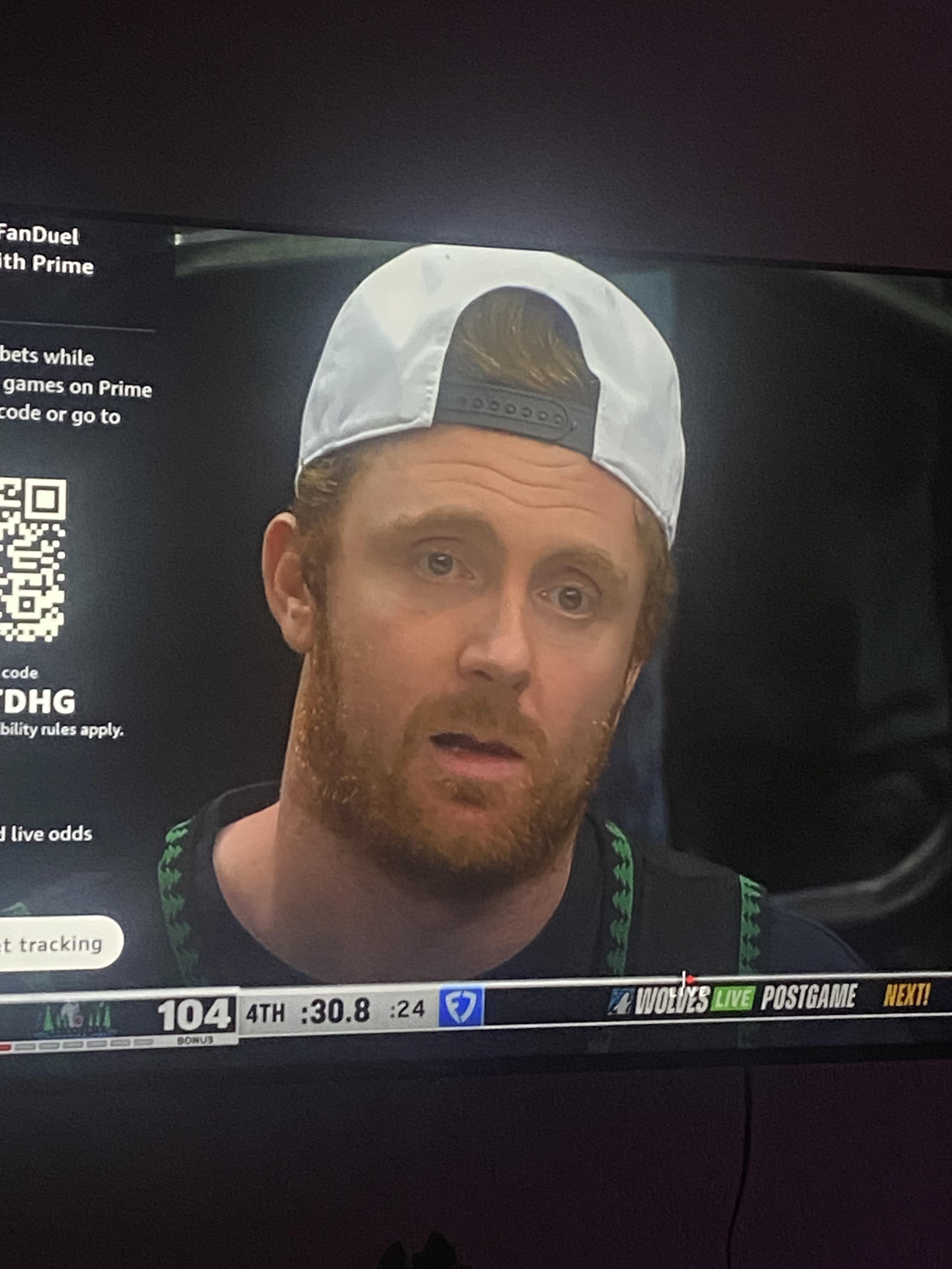 My man looks like he was battling his inner self with an existential crisis while being at a wolves game
