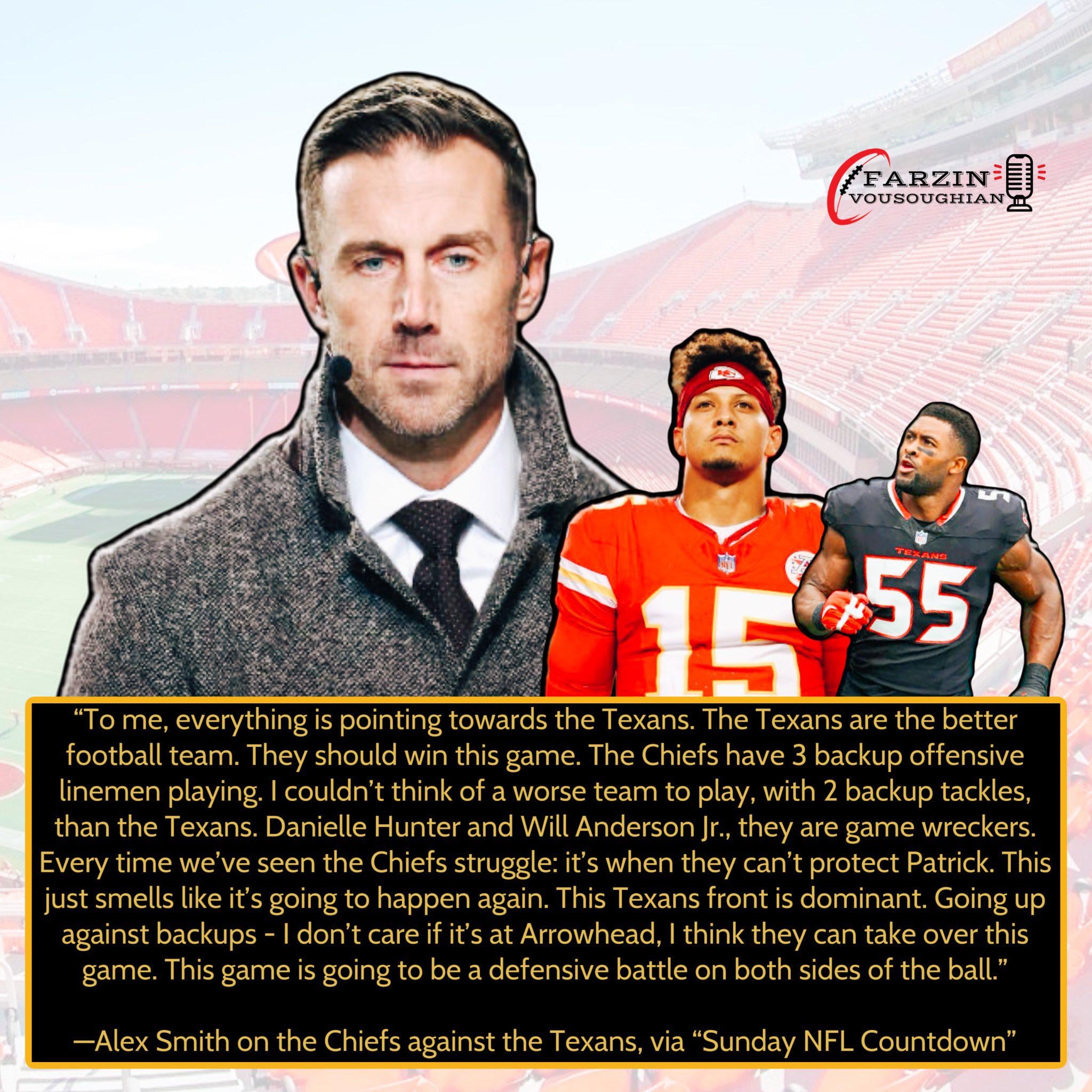 Alex Smith said the Texans are “the better football team” and expects them to beat the Chiefs. “I don’t care if it’s at Arrowhead.”