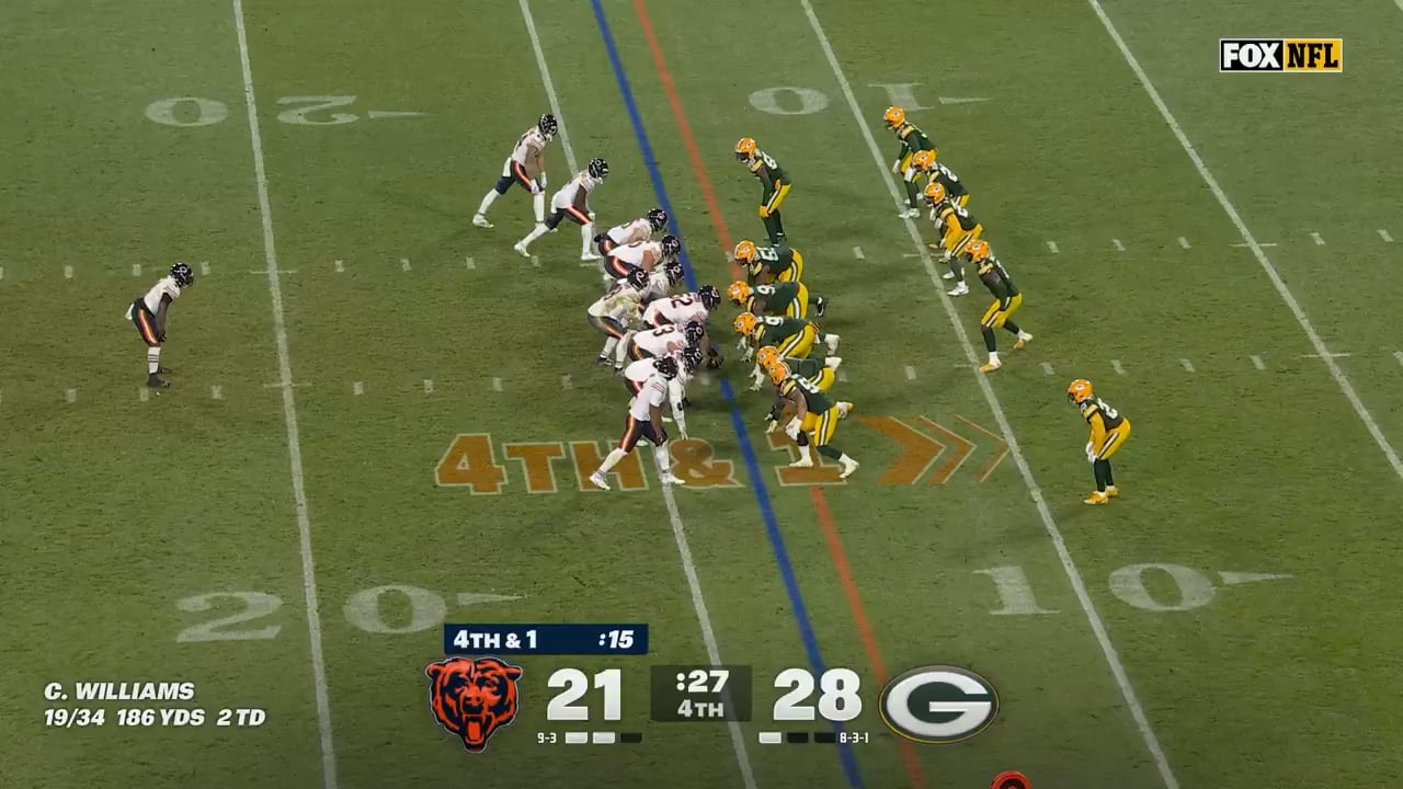 Great coaching. The Bears had this play lined up and the Packers took a timeout. They recognized this alignment from the Eagles game and told the defense to look out for two things… Caleb bootleg scramble and the tight end going to the endzone. The defense picked it up perfectly after that timeout.