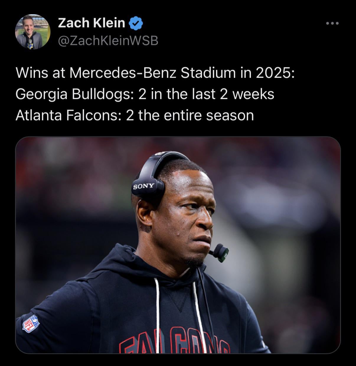 This is really bad for us Bama grads who are also Falcons fans. I mean, I know UGA is still our son even after the recent mishap, but I still hate to see them win games in our vacation house.