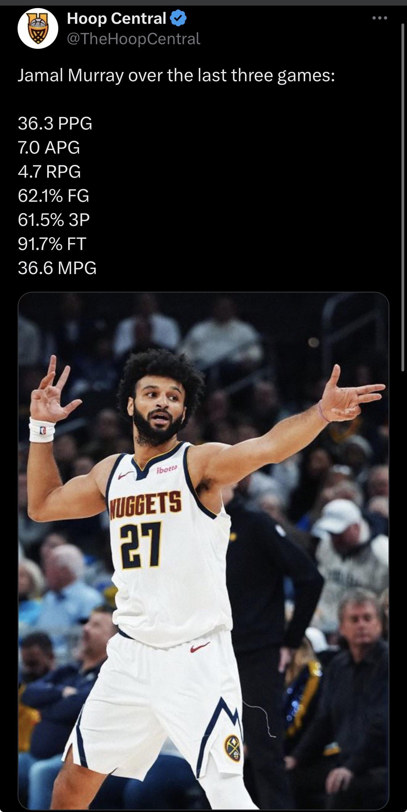There’s a lot of haters that still have to claw out of their mom’s basement to say how bad nugs are. Giv these losers a week or 2 and they may realize how awful they are and how great the Nuggets are.