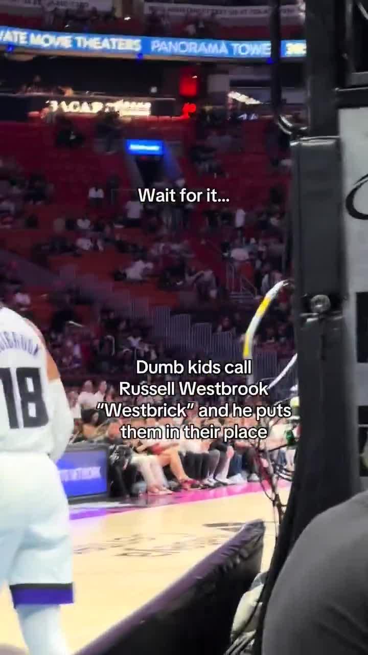 Russell Westbrook to a kid who called him “Westbrick”: “What you say? What you say? Don’t play around with me. Don’t play on me.”
