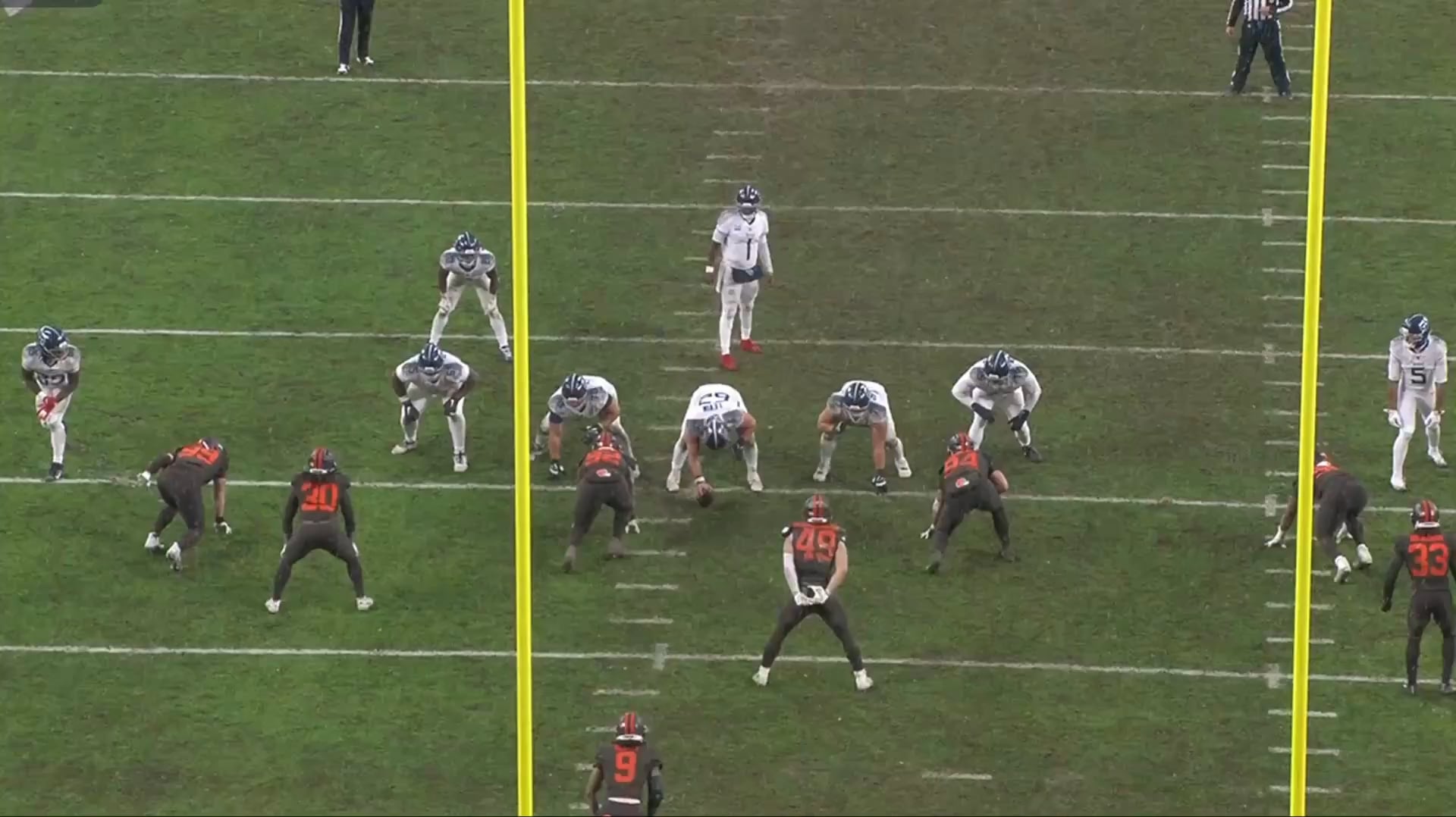Sheesh. It’s no wonder that the Titans running game did well. Look how wide the defense is spread and how large the gaps are.