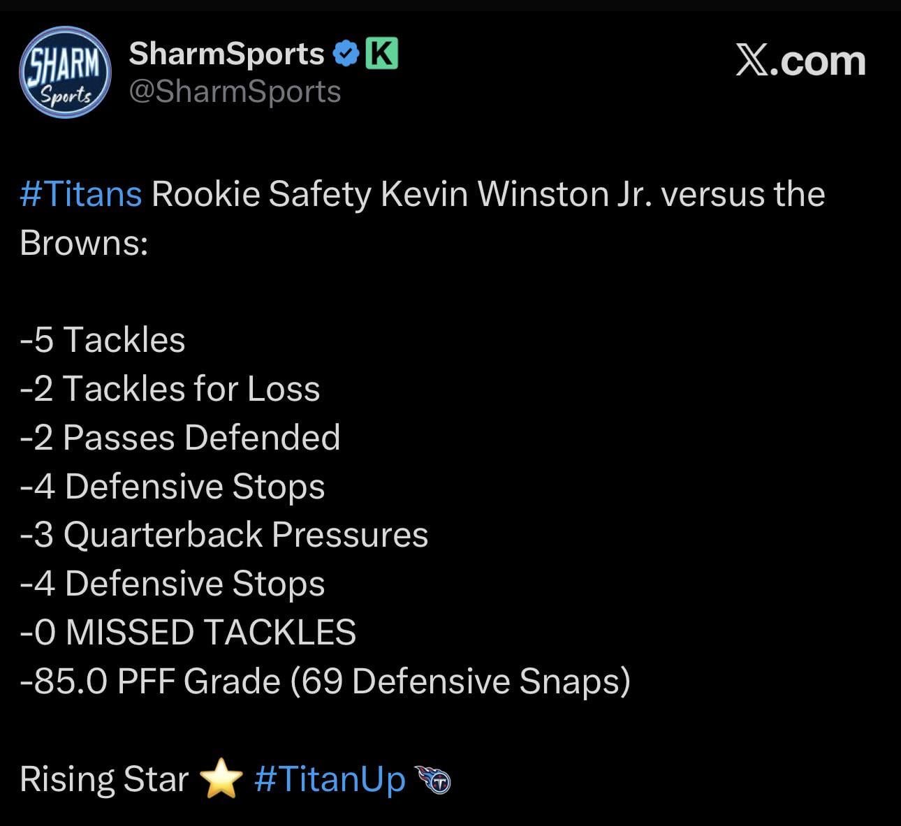 Kevin Winston Jr. continues to look like a special player 7 comments He also chased down Judkins from behind to stop him at the 2 yd line despite basically being blocked out of the way. Stud. One thing is clear: Borgo knows how to draft Remember when people were calling him a bust a week ago because of a blown coverage? Love to see it. Has he been playing slot corner? Either way, as poorly as Hooker has played this year, it’s nice to have his replacement lined up. This might be the best draft in Titans history. If we can get good coaching in place Borgonzi knows how to find some fucking talent It’s still really *really* early but Winston could turn out to be a steal. The only bright spots on the Titans this year are the rookies, Bones Fassell, and Borgonzi. 4 more defensive stops Leave a ReplyYou must be logged in to post a comment.