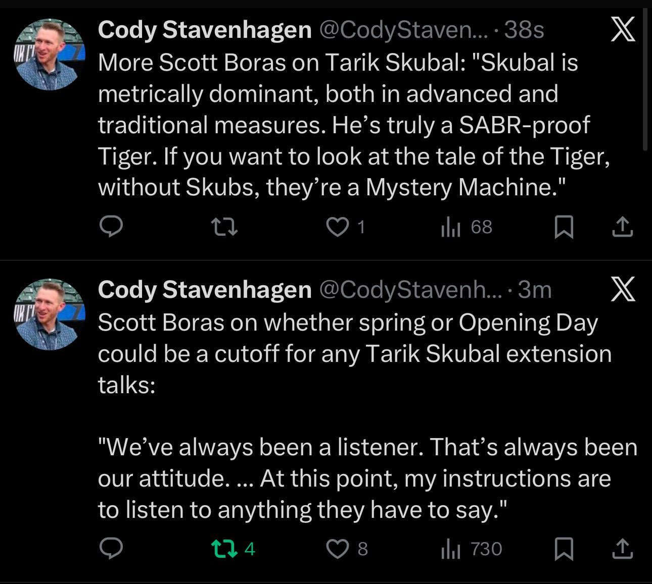 10. Obviously Skubal & Boras want the big contract – but I am getting the impression that they want the Tigers to show some interest in giving them that money right now. Everything that he’s saying sounds extension-motivated.