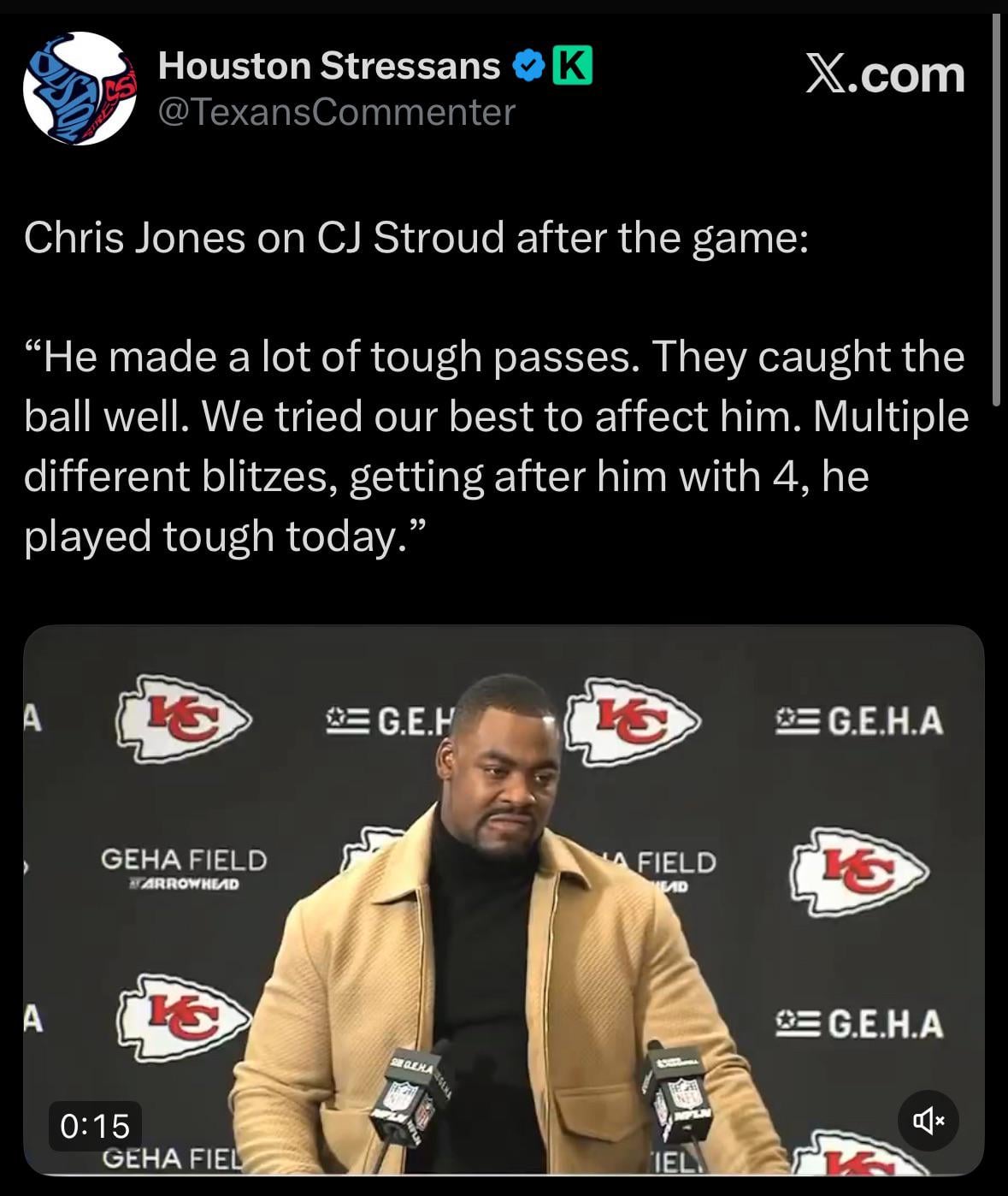 Big difference in the game is Stroud made more critical throws in critical moments and didn’t turn the ball over compared to Mahomes. Our guys also didn’t have critical drops.
