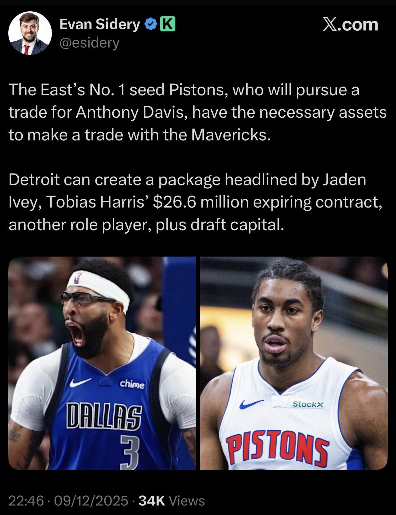 I’d like to imagine the package is Ivey, Harris and LeVert + 2026 + 2028 for AD.