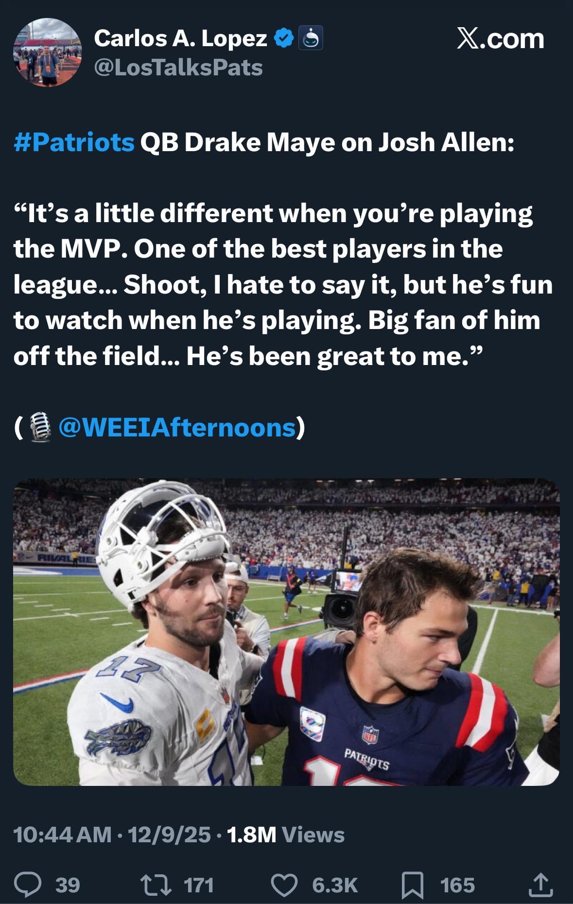 Drake Maye seems to be getting a case of Lamar Jackson. Love the guy, hate his fans.