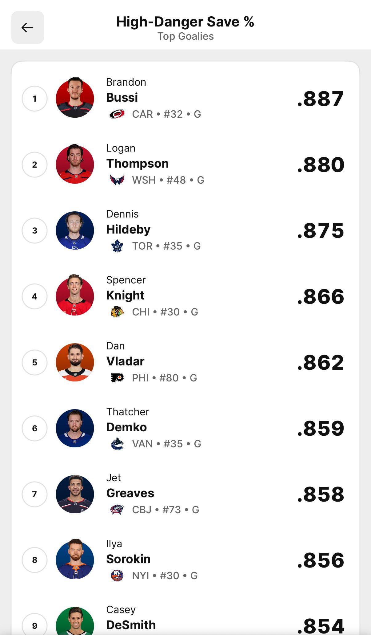 Of all the goalie stats, high danger is the main one I care about especially the way our team usually plays. 3 comments And honestly, you can feel it. He makes some saves sometimes that absolutely stun me. > the way our team usually plays. lol you mean routinely coughing it up right in front of our own net or making a drop pass in our zone to the other team? Yeah. Our defense mostly snuffs out the less dangerous shots, so this is such an important area to be good at! Leave a ReplyYou must be logged in to post a comment.