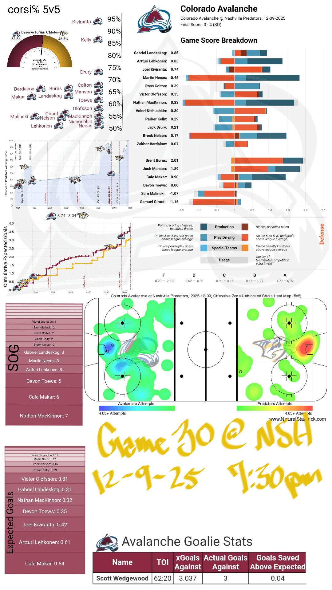 We’re really spoiled this year and this loss bothered me. Glad to see Makar get a goal though. He’s had so many chances over a couple of games and he just couldn’t get the puck in.