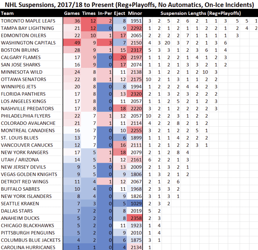 Added context, the Leafs are among the least penalized teams on the ice since Parros took over DOPS. The Leafs sit 8th least in terms of total penalties taken since 2018.