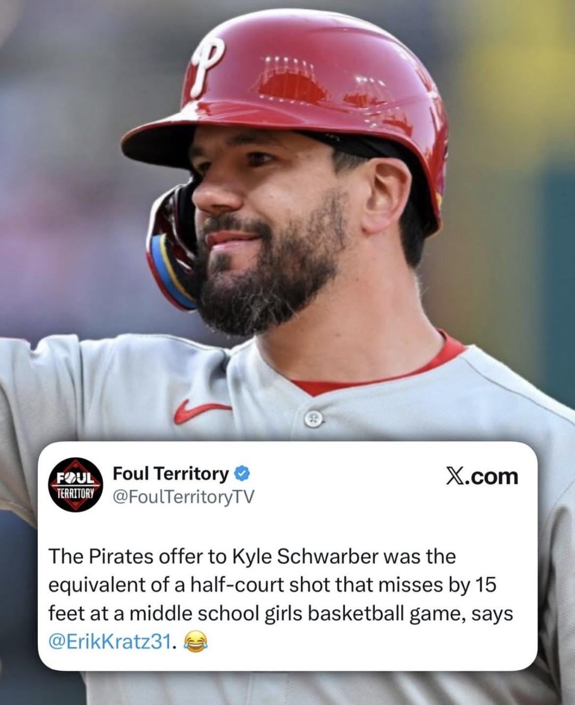 However, it was an objectively fair offer, with higher AAV than the offer he ended up accepting with the Phillies. The issue is, with all of the negative goodwill they’ve built up, nobody wants to come here. You can’t offer a marginally better deal as the Pirates anymore, you need to probably overpay 10-15 mil a year to get a FA like Schwarber to sign here and they gave him a market offer, likely knowing that. Can’t hate on the offer (especially if you’re Erik fucking Kratz) but it’s not exactly easy to try and defend this FO when they actually do try either