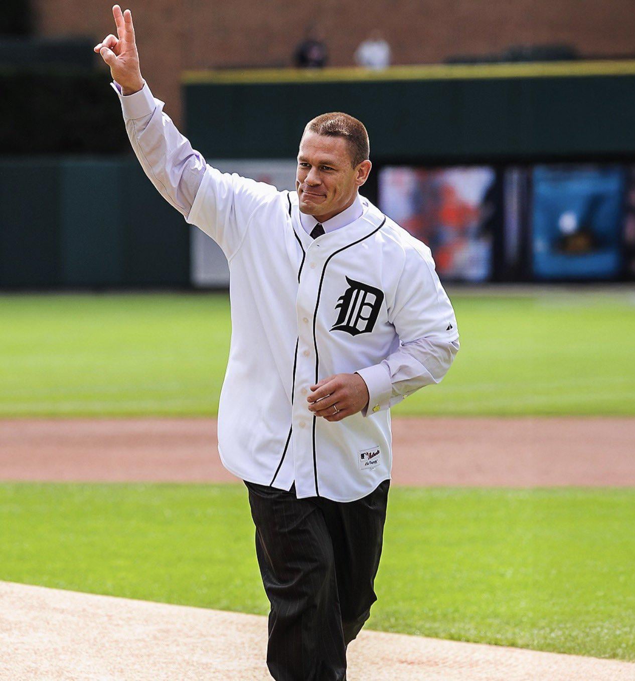 Tonight's the final stop of his farewell retirement tour, so sports teams from all leagues have been posting photo tributes of Cena rocking their gear over the years. Here's one I found of him when he visited Comerica. Salute to one of the greatest of all time for a memorable and historical career.