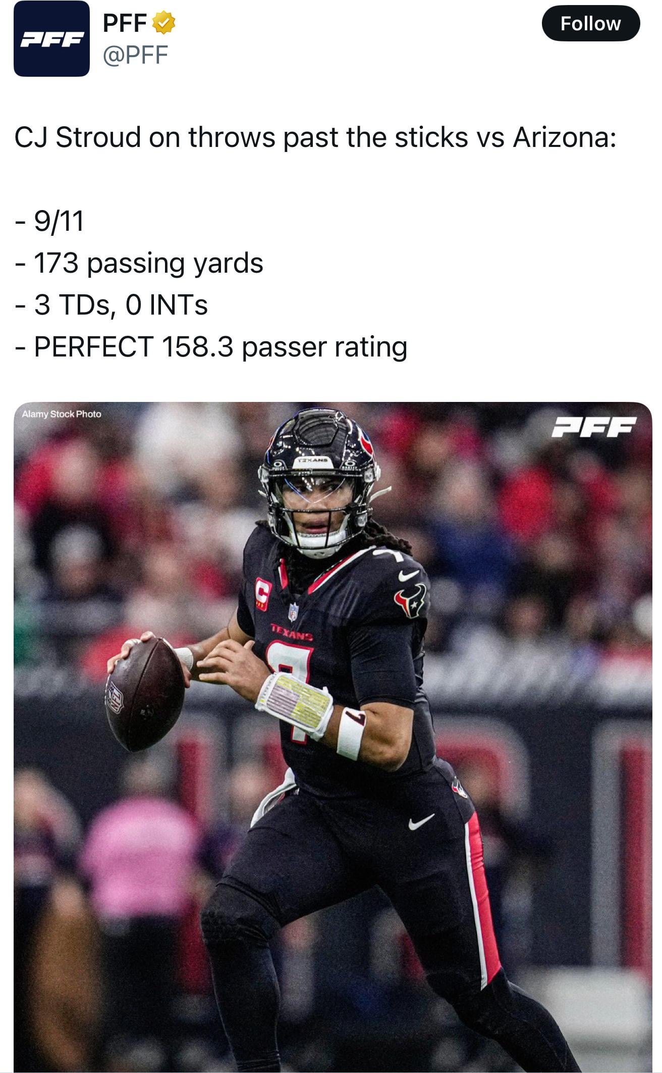 To me this was his best game all season honestly. Stood tough, delivered on time, and threw the ball away when necessary. He played what I felt like was nearly a flawless game.