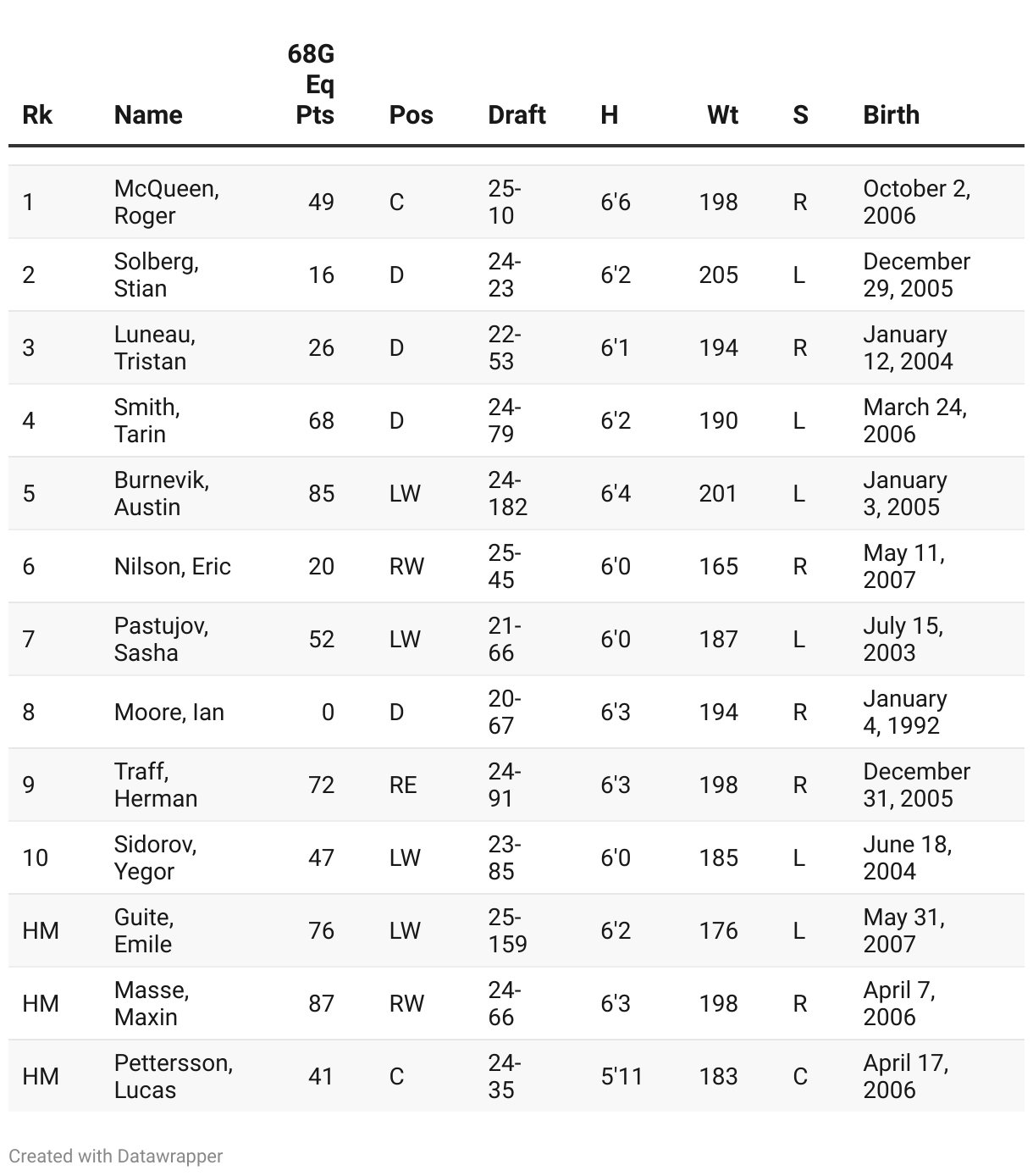 They have Ian Moore ranked 8th and he’s already a solid NHL defenseman. Either they don’t know what they’re talking about or the seven guys above him are all going to be excellent!