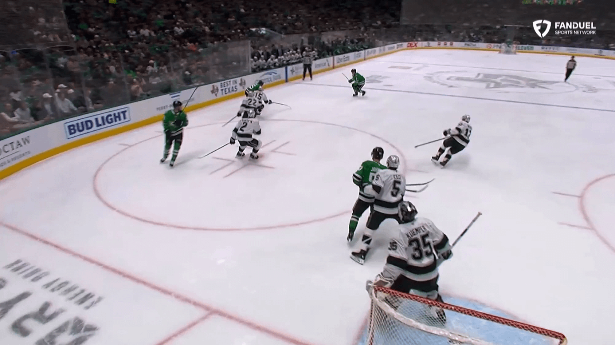 There is a argument this wasn’t really Rantanens faults. The Kings defender was leaning on him forcing him into Kuemper.