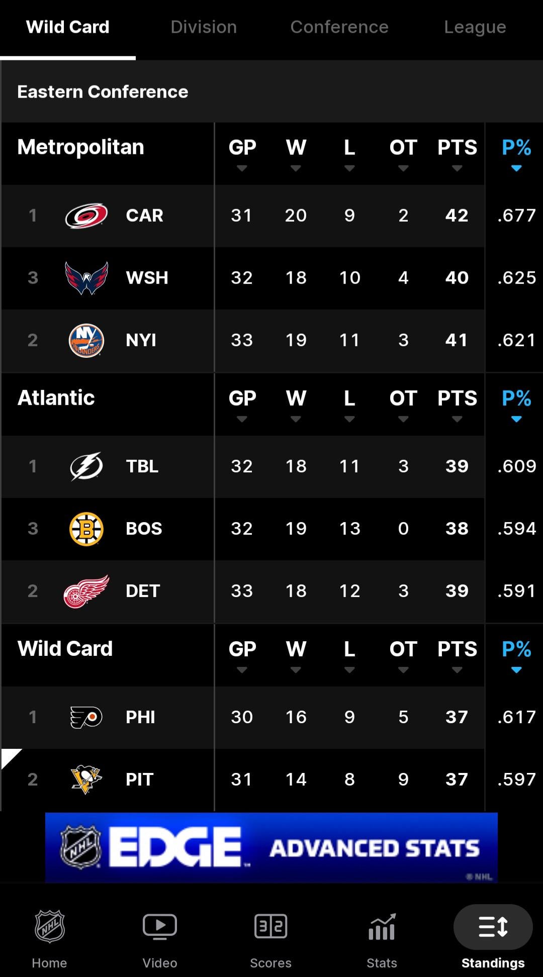 Night isn’t over. Philly got a point, so they move ahead by a point with same amount of games played.