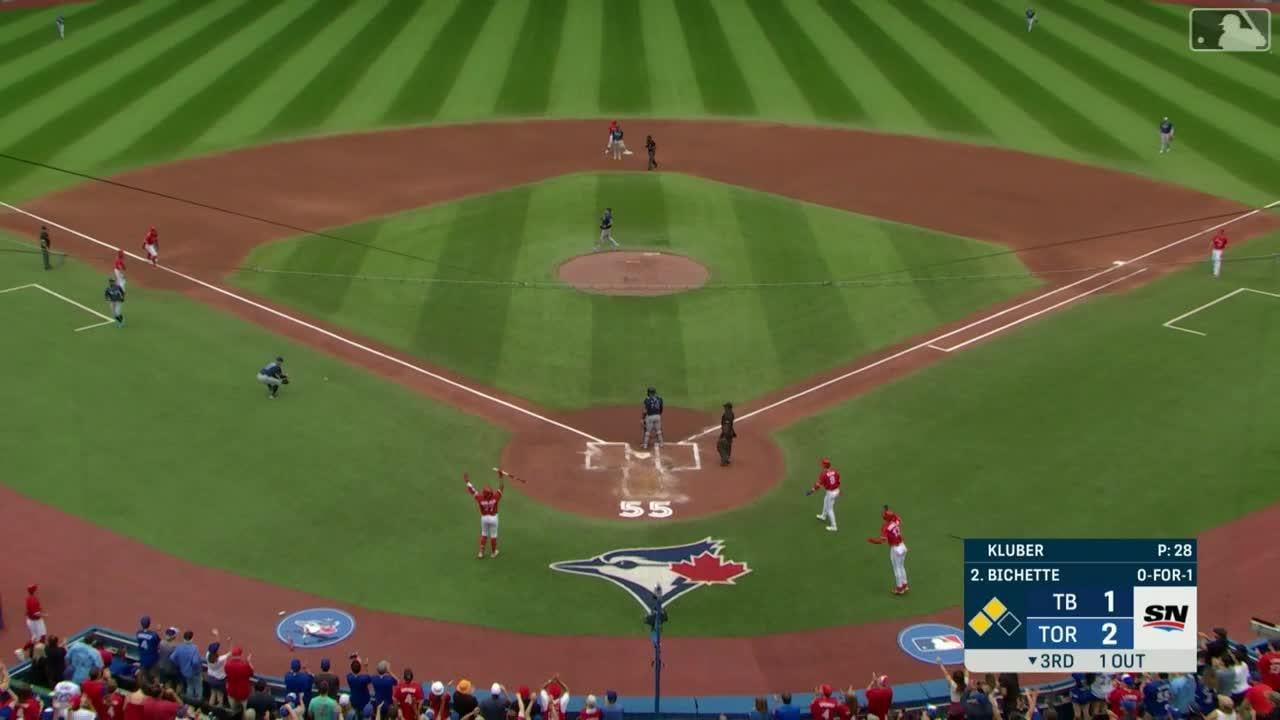 The Canada Day game of 2022. This game was fun; in this inning Bichette, Guerrero and Kirky went back-to-back-to-back with RBIs, and the Blue Jays eventually won this game 9-2.