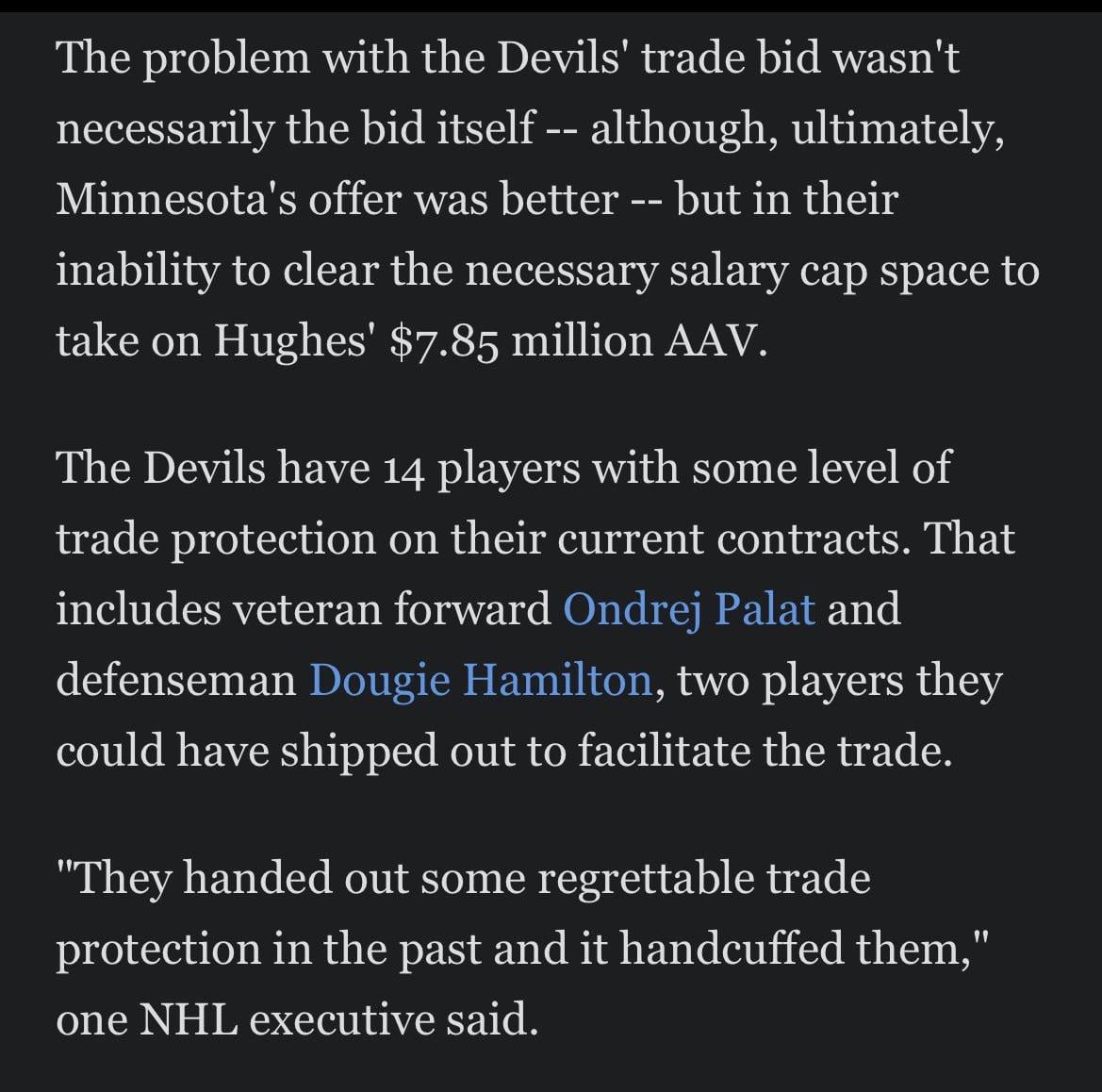 For those doing the math, those 14 players represent 60% of the devils 23-man roster having some form of protection.