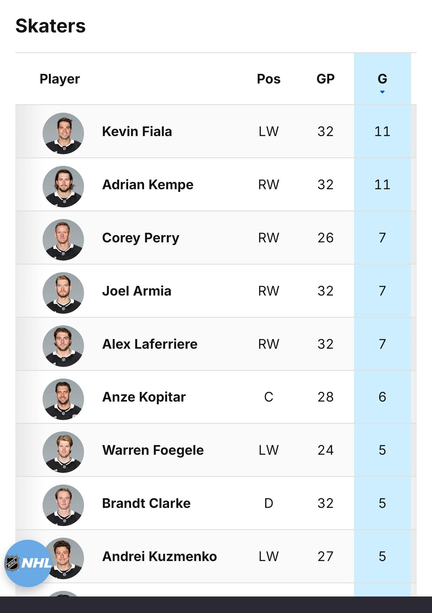 We dont have goal scorers aside from Kempe & Fiala. Fucking Corey Perry isnt far awsy from being our top scorer. Fuck